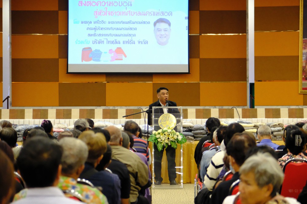 โดย นายกุล เครือวีระ นายกเทศมนตรีนครแม่สอด พร้อมด้วย คณะผู้บริหาร สมาชิกสภาเทศบาล ร่วมกิจกรรมมอบเสื้อกันหนาว ส่งต่อความอบอุ่น สู่หัวใจชาวเทศบาลนครแม่สอด ให้กับประชาชน 800 คน ทั้ง 20 ชุมชน ในเขตพื้นที่เทศบาลนครแม่สอด โดยได้รับความอนุเคราะห์จาก บริษัท ไทหลิน แฟชั่น จำกัด