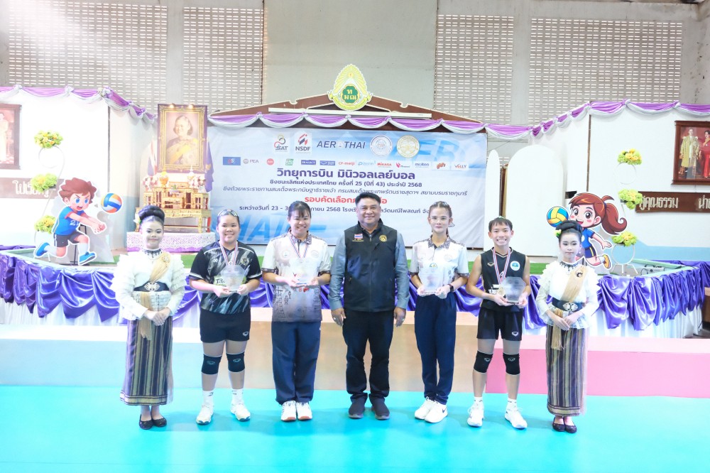 นายกุล เครือวีระ นายกเทศมนตรีนครแม่สอด พร้อมด้วย คณะผู้บริหาร สมาชิกสภาเทศบาล และเจ้าหน้าที่ที่เกี่ยวข้องเข้าร่วมพิธีปิดการแข่งขันกีฬาวิทยุการบิน ฯ มินิวอลเลย์บอล ชิงชนะเลิศแห่งประเทศไทย ครั้งที่ 25 (ปีที่ 43) ประจำปี 2568 ชิงถ้วยพระราชทานสมเด็จพระกนิษฐาธิราชเจ้า กรมสมเด็จพระเทพรัตนราชสุดา ฯ สยามบรมราชกุมารี