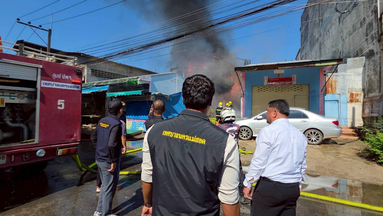 นายกุล เครือวีระ นายกเทศมนตรีนครแม่สอด พร้อมด้วย คณะผู้บริหาร สมาชิกสภาเทศบาล เจ้าหน้าที่กองช่าง เจ้าหน้าที่เทศกิจเทศบาลนครแม่สอด และเจ้าหน้าที่ฝ่ายป้องกันและบรรเทาสาธารณภัยเทศบาลนครแม่สอด ลงพื้นที่ดำเนินการระงับเหตุเพลิงไหม้บริเวณใกล้กับตลาดพาเจริญ ในเขตพื้นที่เทศบาลนครแม่สอด ร่วมกับ อำเภอแม่สอด เทศบาลตำบลท่าสายลวด เทศบาลตำบลแม่ตาว องค์การบริหารส่วนตำบลแม่ปะ องค์การบริหารส่วนตำบลพระธาตุผาแดง การไฟฟ้าส่วนภูมิภาคอำเภอแม่สอด สำนักงานป้องกันและบรรเทาสาธารณภัยจังหวัดตาก สาขาแม่สอด