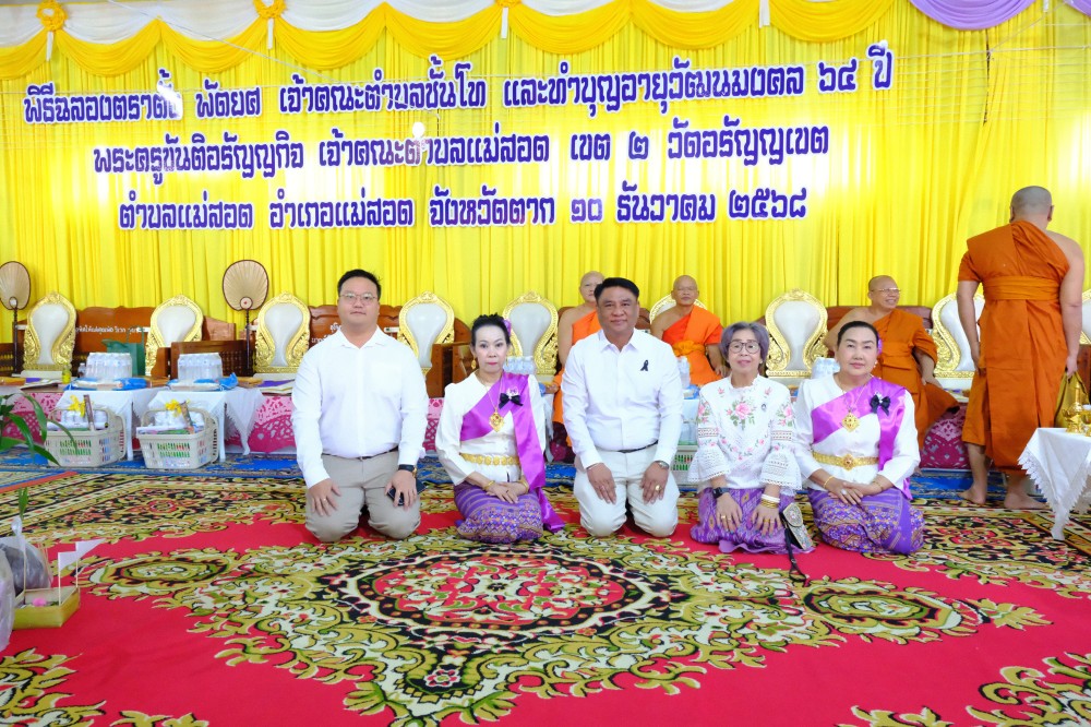 นายกุล เครือวีระ นายกเทศมนตรีนครแม่สอด เป็นประธานในพิธี ฯ พร้อมด้วย นายอภิชาติ อัศวปยุกต์กุล เลขานุการนายกเทศมนตรี เข้าร่วมพิธีฉลองตราตั้งพัดยศ เจ้าคณะตำบล ชั้นโท (จต.ชท.) และทำบุญอายุวัฒนมงคล สืบชะตาหลวง 64 ปี วัดอรัญญเขต