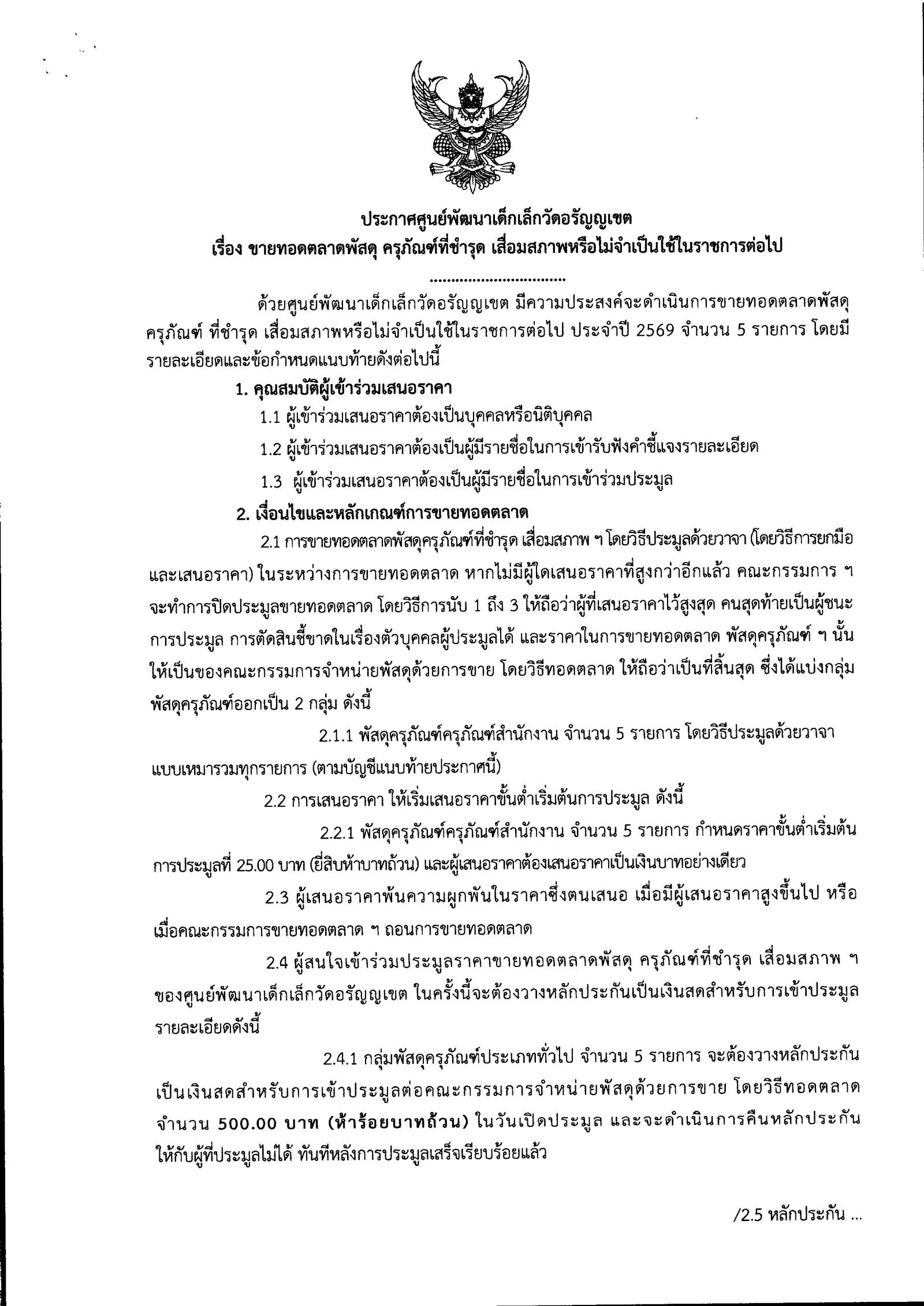 เทศบาลนครแม่สอด ขอประชาสัมพันธ์ ศูนย์พัฒนาเด็กเล็กวัดอรัญญเขต พัสดุขายทอดตลาด ครุภัณฑ์ที่ชำรุด เสื่อมสภาพหรือไม่จำเป็นใช้ในราชการต่อไป จำนวน 5 รายการ