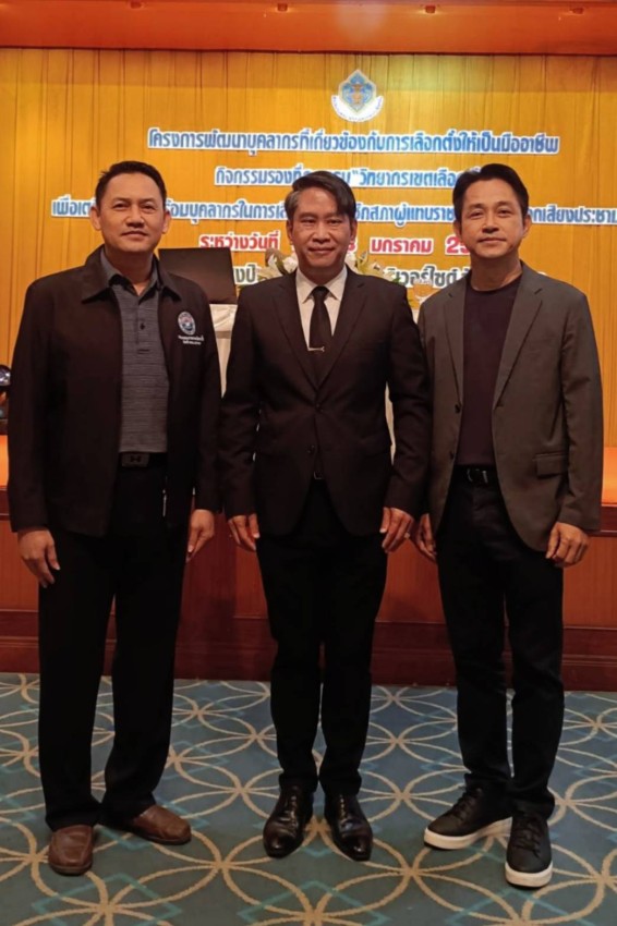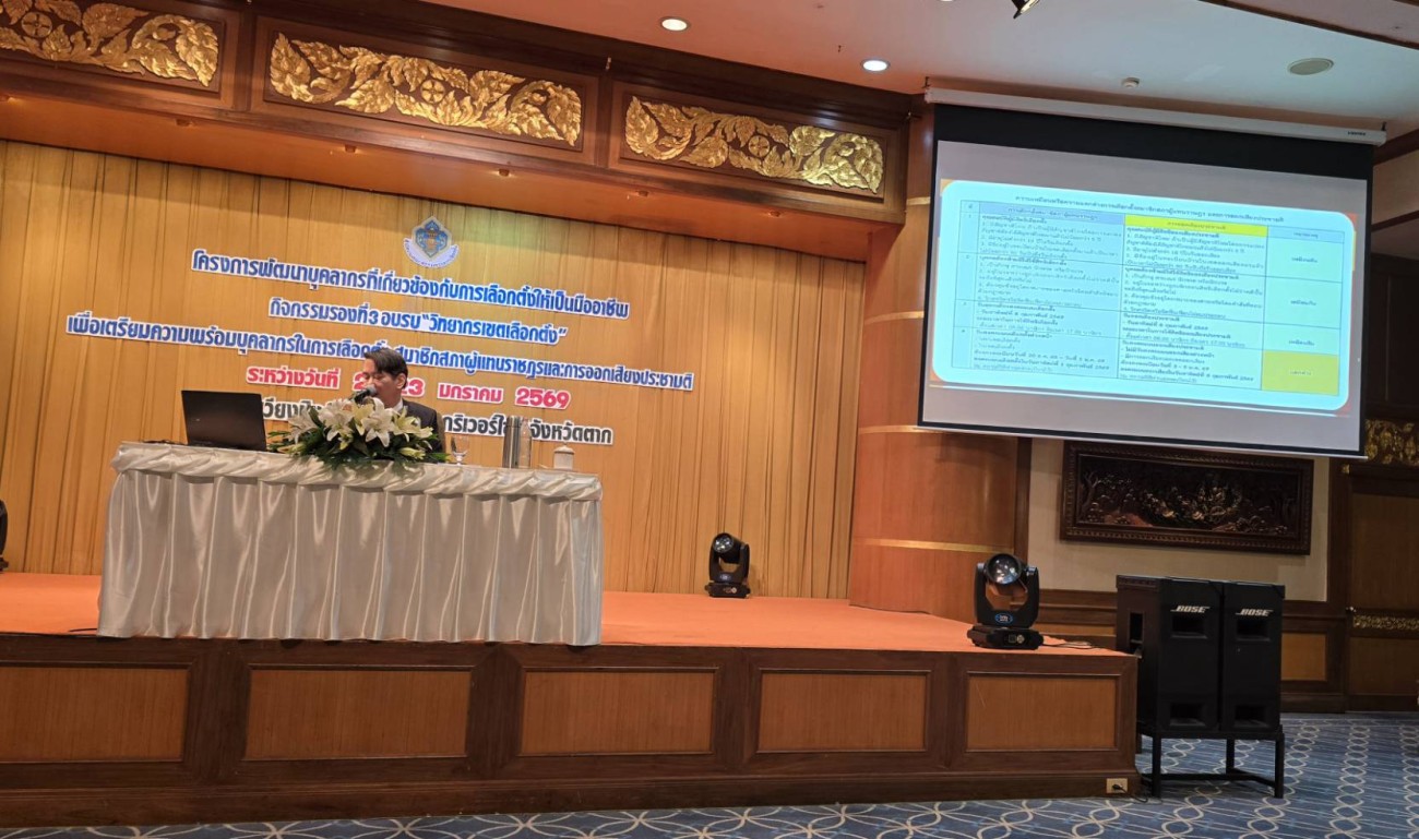 ว่าที่พันตรี ดร.ไพฑูรย์ ปริญญาธรรมกุล ผู้อำนวยการกองยุทธศาสตร์และงบประมาณ พร้อมด้วย นายขวัญชัย พะยอม หัวหน้าฝ่ายวิเทศสัมพันธ์ กองยุทธศาสตร์และงบประมาณ และนายธวัชชัย จอมจันทร์ หัวหน้าฝ่ายนิติการ สำนักปลัดเทศบาลนครแม่สอด เข้าร่วมการอบรมวิทยากรเขตเลือกตั้งเพื่อเตรียมความพร้อมบุคลากรในการเลือกตั้งสมาชิกสภาผู้แทนราษฎรและการออกเสียงประชามติ ระหว่างวันที่ 22 - 23 มกราคม 2569