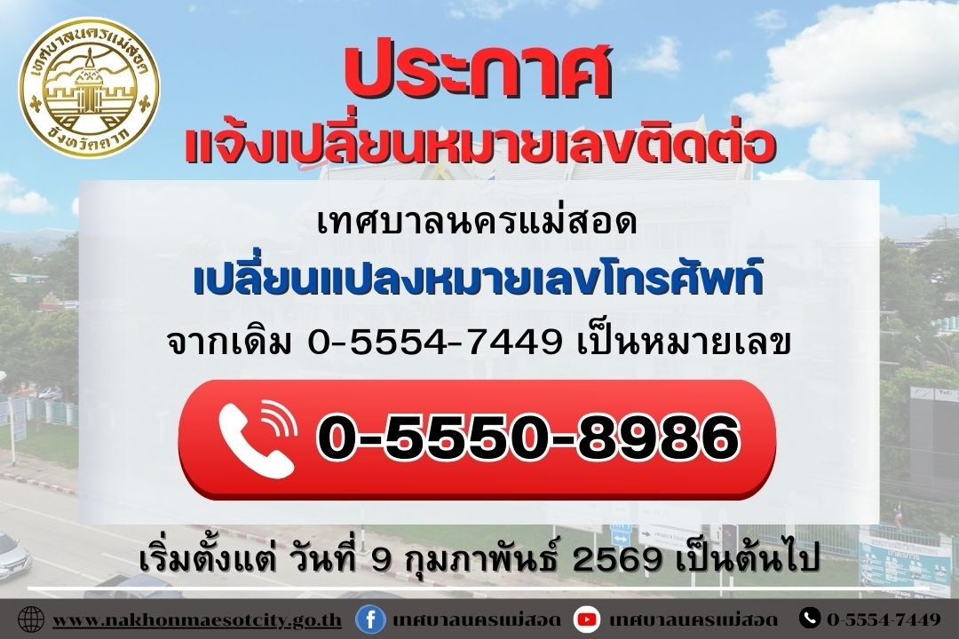 เทศบาลนครแม่สอดประกาศ แจ้งเปลี่ยนหมายเลขติดต่อ
