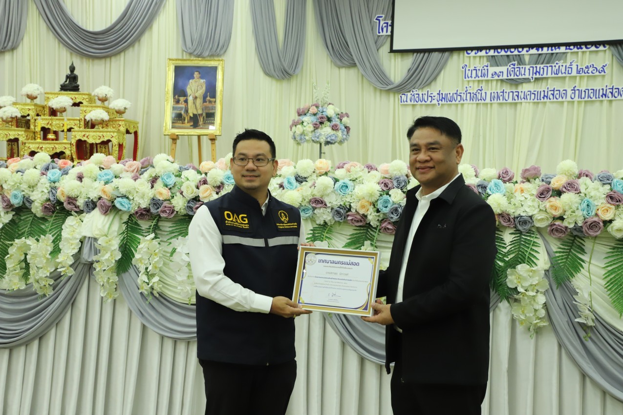 เมื่อวันศุกร์ ที่ 13 กุมภาพันธ์ พ.ศ. 2569 เวลา 08.30 น. ณ ห้องประชุมเพชรน้ำหนึ่ง (ชั้น 6) อาคารศูนย์ส่งเสริมอาชีพชุมชน เทศบาลนครแม่สอด อำเภอแม่สอด จังหวัดตาก