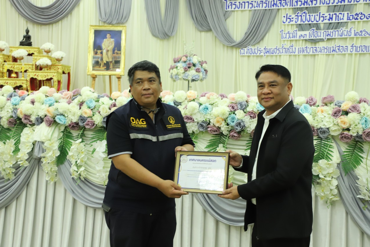 ทน.แม่สอด ร่วมพิธีรดน้ำดำหัว นายชูศักดิ์ รู้ยิ่ง ผู้ว่าราชการจังหวัดตาก เนื่องในประเพณีสงกรานต์ ปี 2569 "ภูมิใจ แต่งไทยทั้งแผ่นดิน" ร่วมรณรงค์การแต่งกายอัตลักษณ์ไทย สู่สากล
