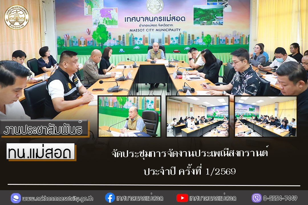 นายกุล เครือวีระ นายกเทศมนตรีนครแม่สอด มอบหมายให้ นายธีรรัตน์ ใจโปร่ง รองนายกเทศมนตรีนครแม่สอด พร้อมด้วย คณะผู้บริหาร รองปลัดเทศบาลนครแม่สอด หัวหน้าส่วนราชการ และเจ้าหน้าที่ที่เกี่ยวข้อง เข้าร่วมการประชุมการจัดงานประเพณีสงกรานต์ ประจำปี ครั้งที่ 1/2569