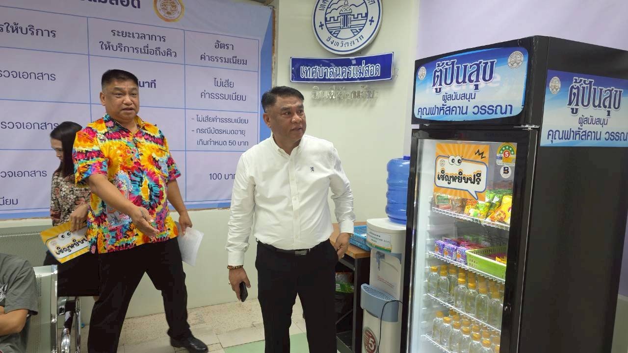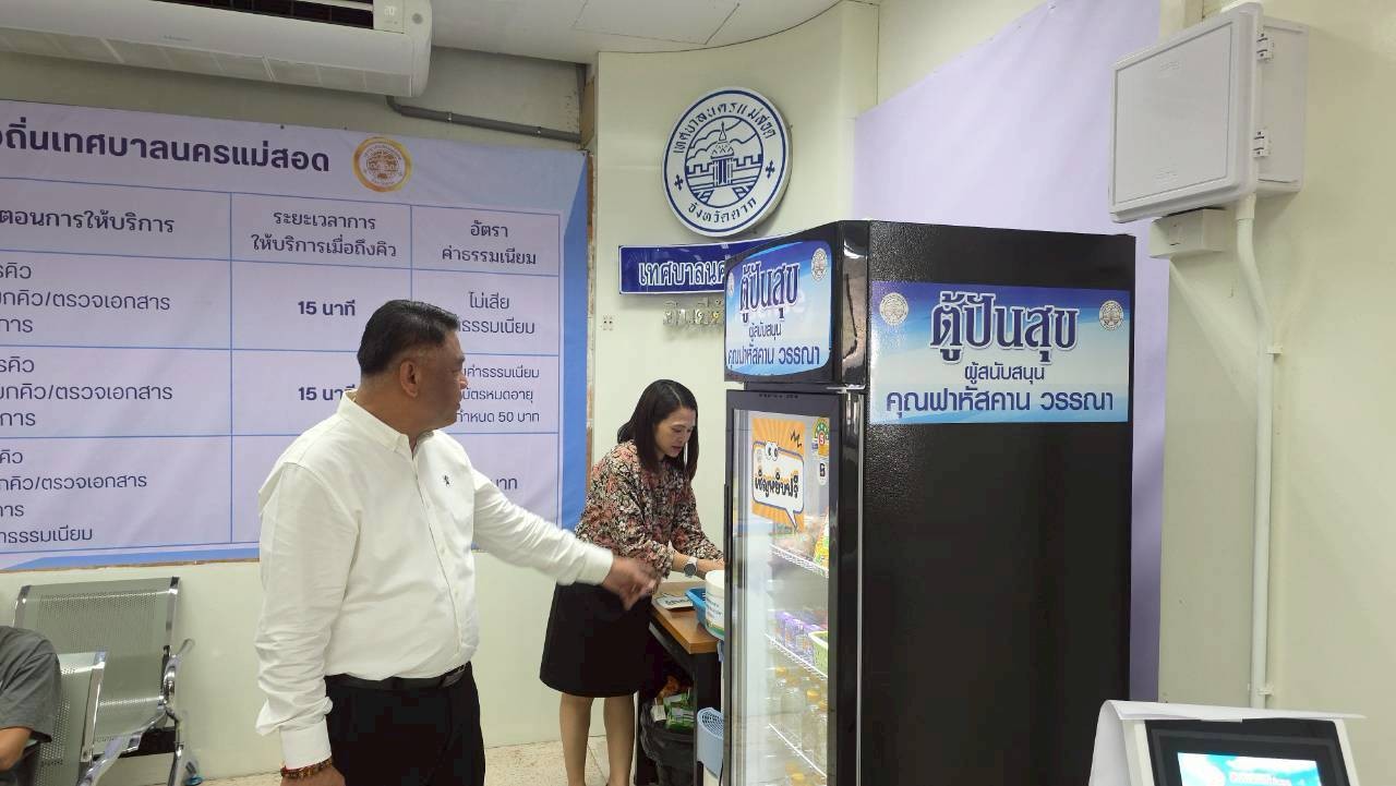 ทน.แม่สอด จัดตู้ปันสุขเพื่อให้บริการขนมและน้ำดื่มฟรีแก่ประชาชนที่เดินทางมาติดต่อรับบริการด้านงานทะเบียนราษฎร และการทำบัตรประจำตัวประชาชน