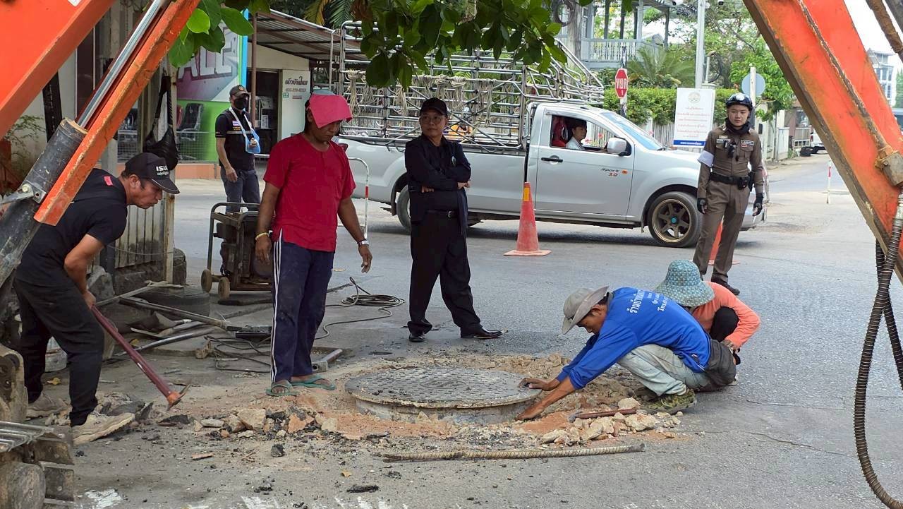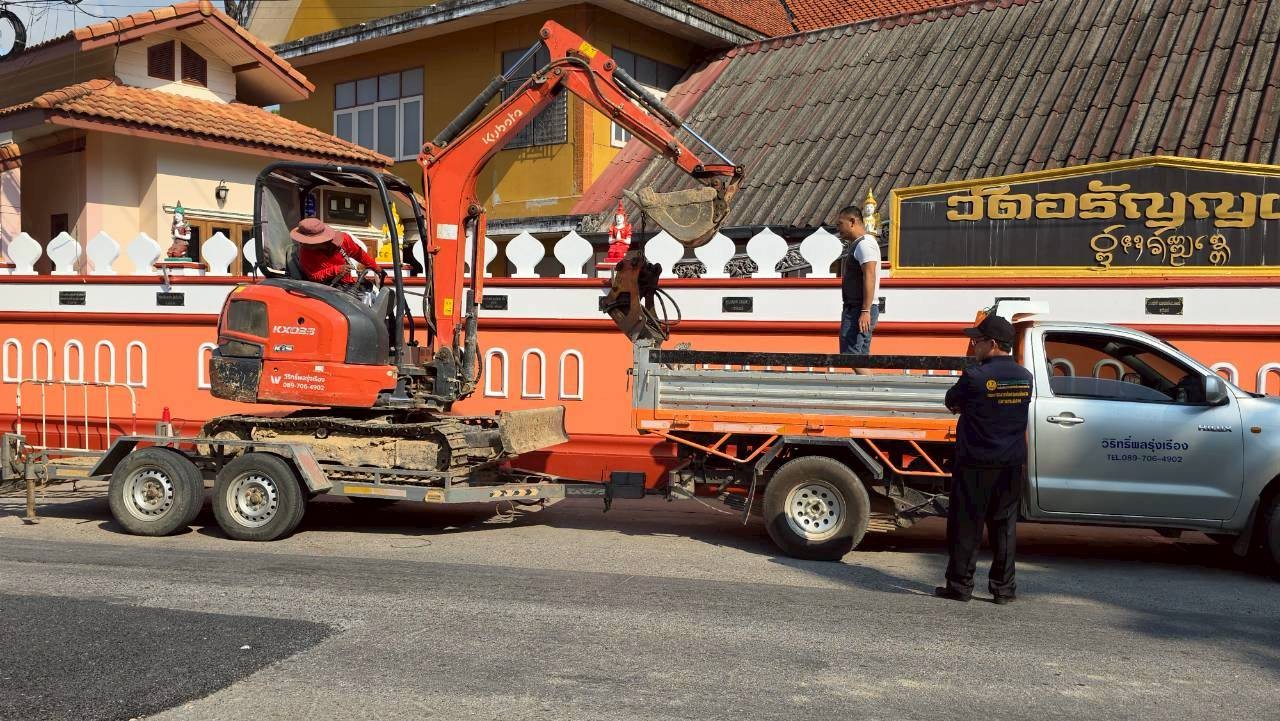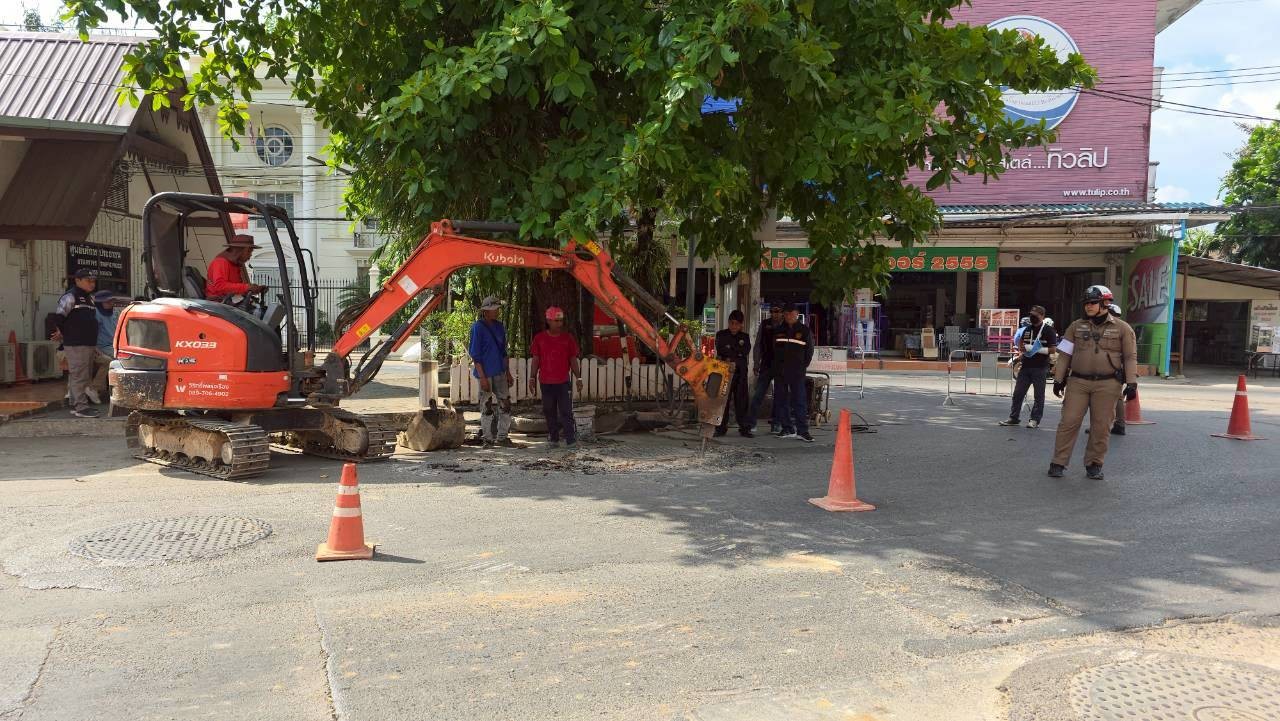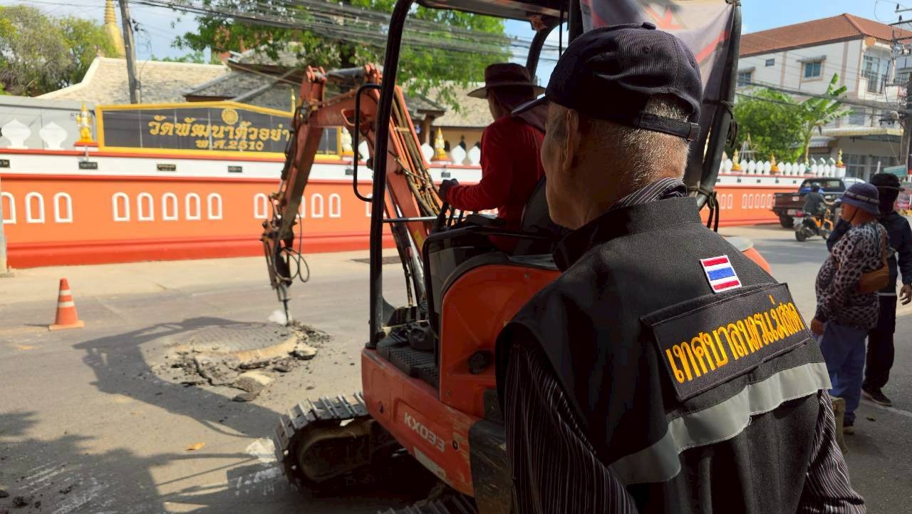 เทศบาลนครแม่สอด ลงพื้นที่ขุดปรับฝาท่อระบายน้ำหน้าวัดอรัญญเขต
