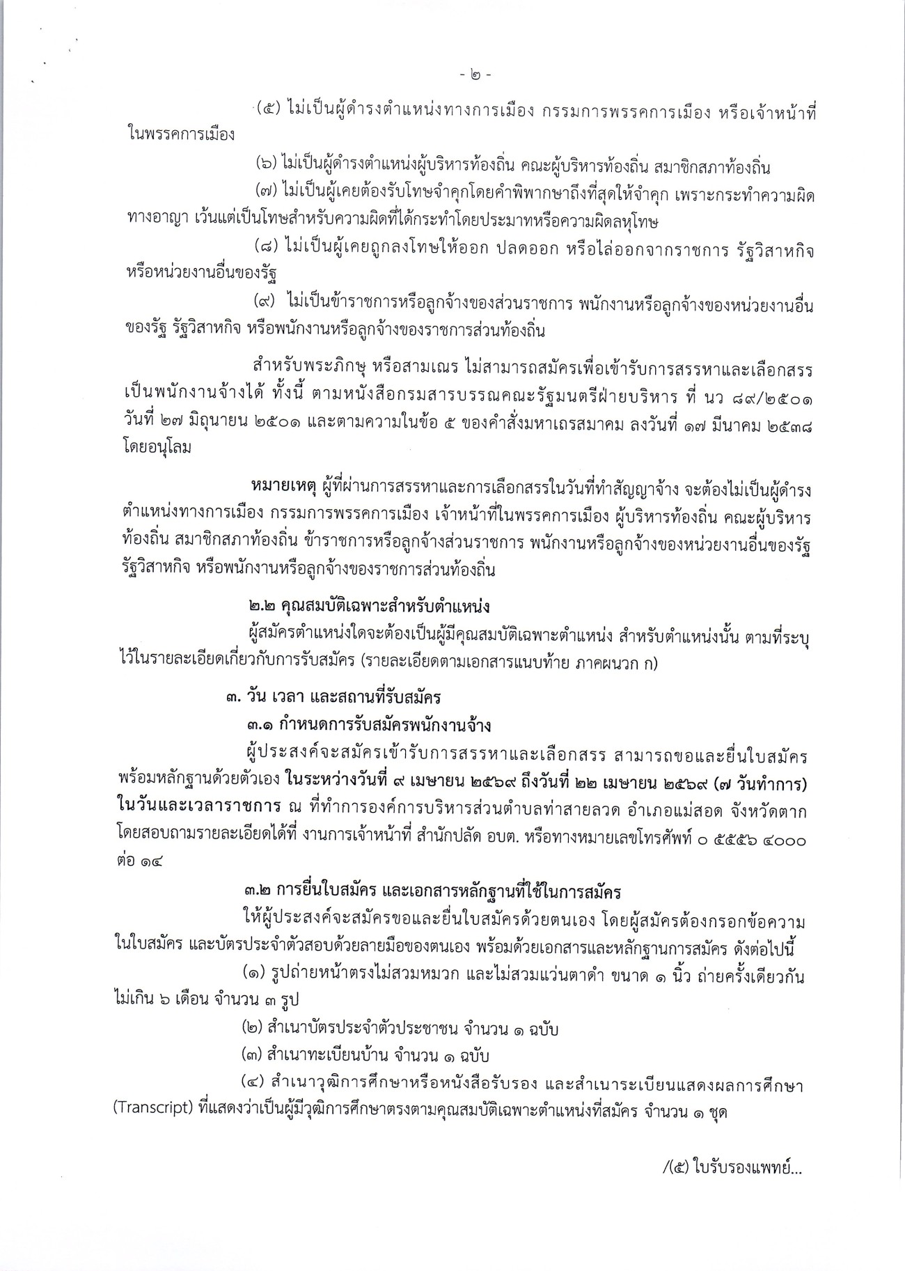 ประกาศเทศบาลนครแม่สอด เรื่อง รับสมัครบุคคลเพื่อสรรหาและเลือกสรรเป็นพนักงานจ้าง