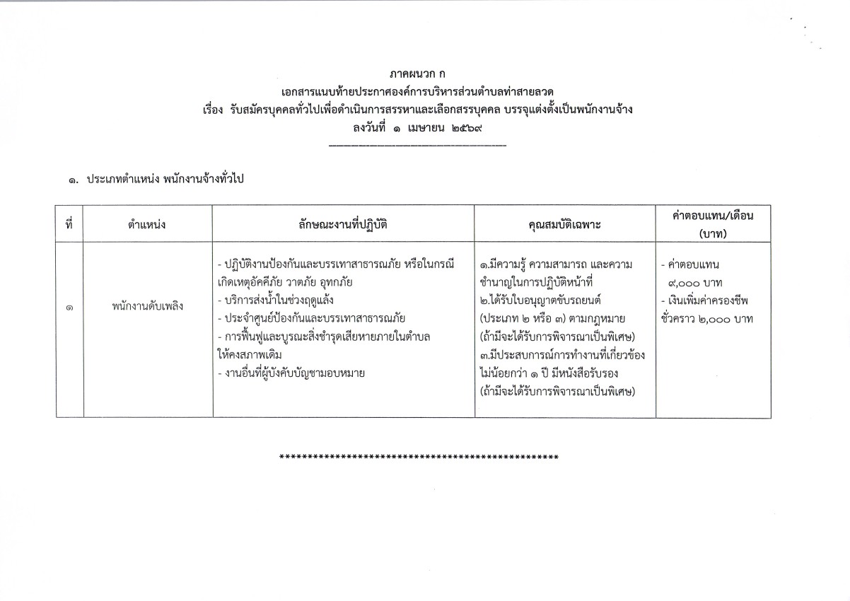 เทศบาลนครแม่สอด ขอประชาสัมพันธ์ประกาศองค์การบริหารส่วนตำบลท่าสายลวด เรื่อง รับสมัครบุคคลทั่วไปเพื่อดำเนินการสรรหาและเลือกสรรบุคคล บรรจุแต่งตั้งเป็นพนักงานจ้าง