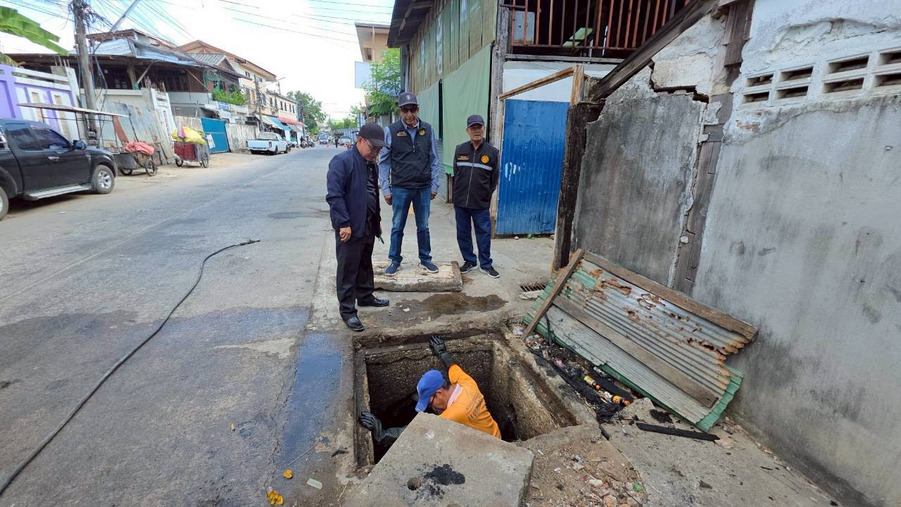 เทศบาลนครแม่สอด ลงพื้นที่ขุดปรับฝาท่อระบายน้ำหน้าวัดอรัญญเขต