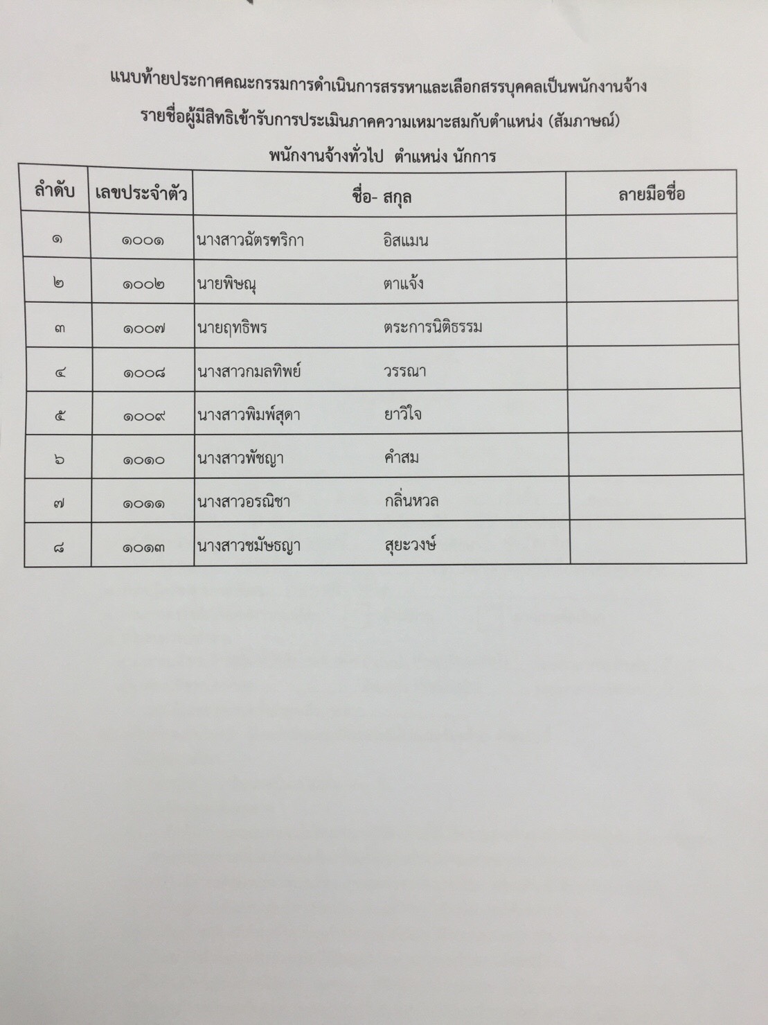 ประกาศรายชื่อผู้มีสิทธิเข้ารับการประเมินภาคความเหมาะสมกับตำแหน่ง (สัมภาษณ์)