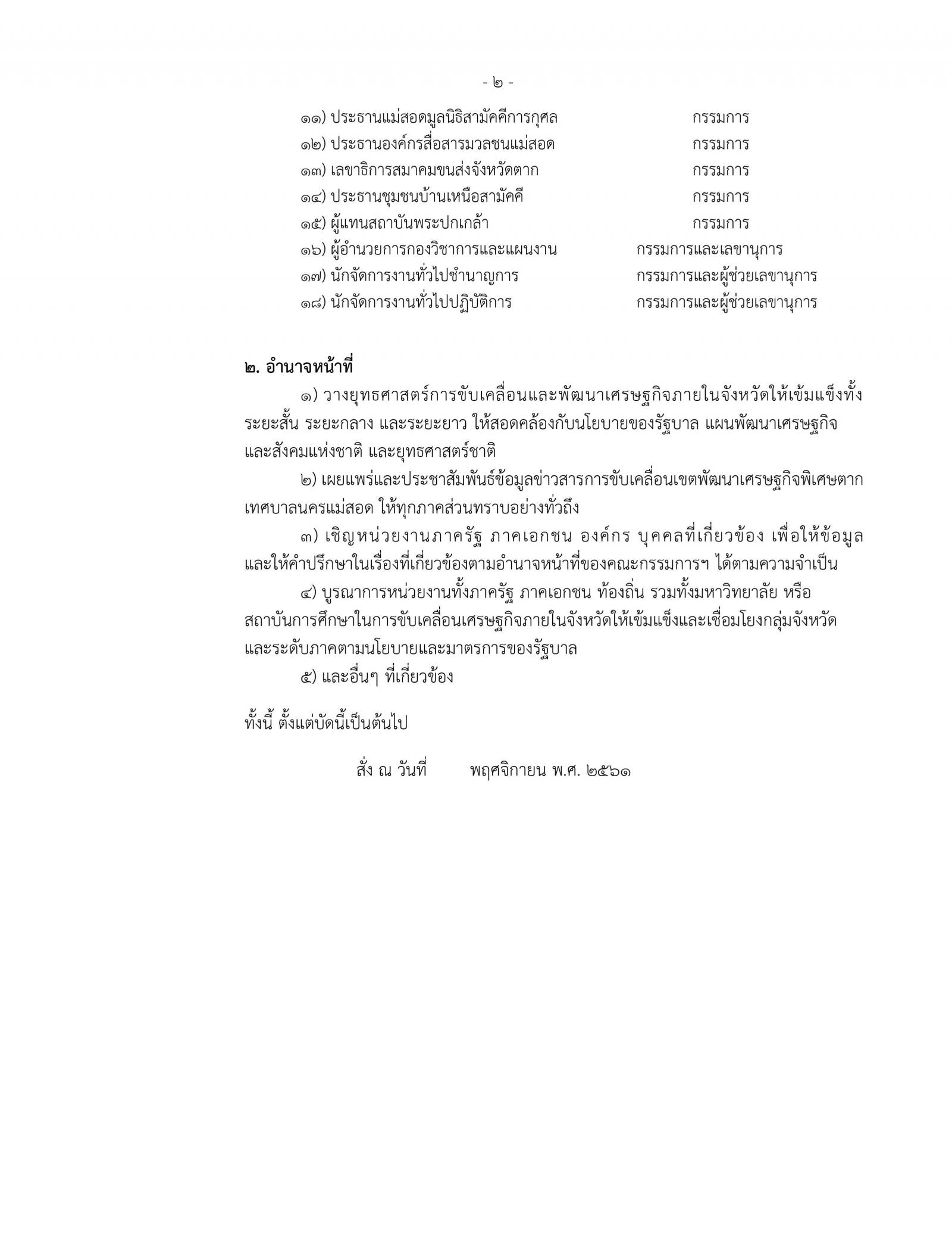 คำสั่งจังหวัดตาก เรื่อง แต่งตั้งคณะกรรมการศูนย์ “DRIVE MAESOT”