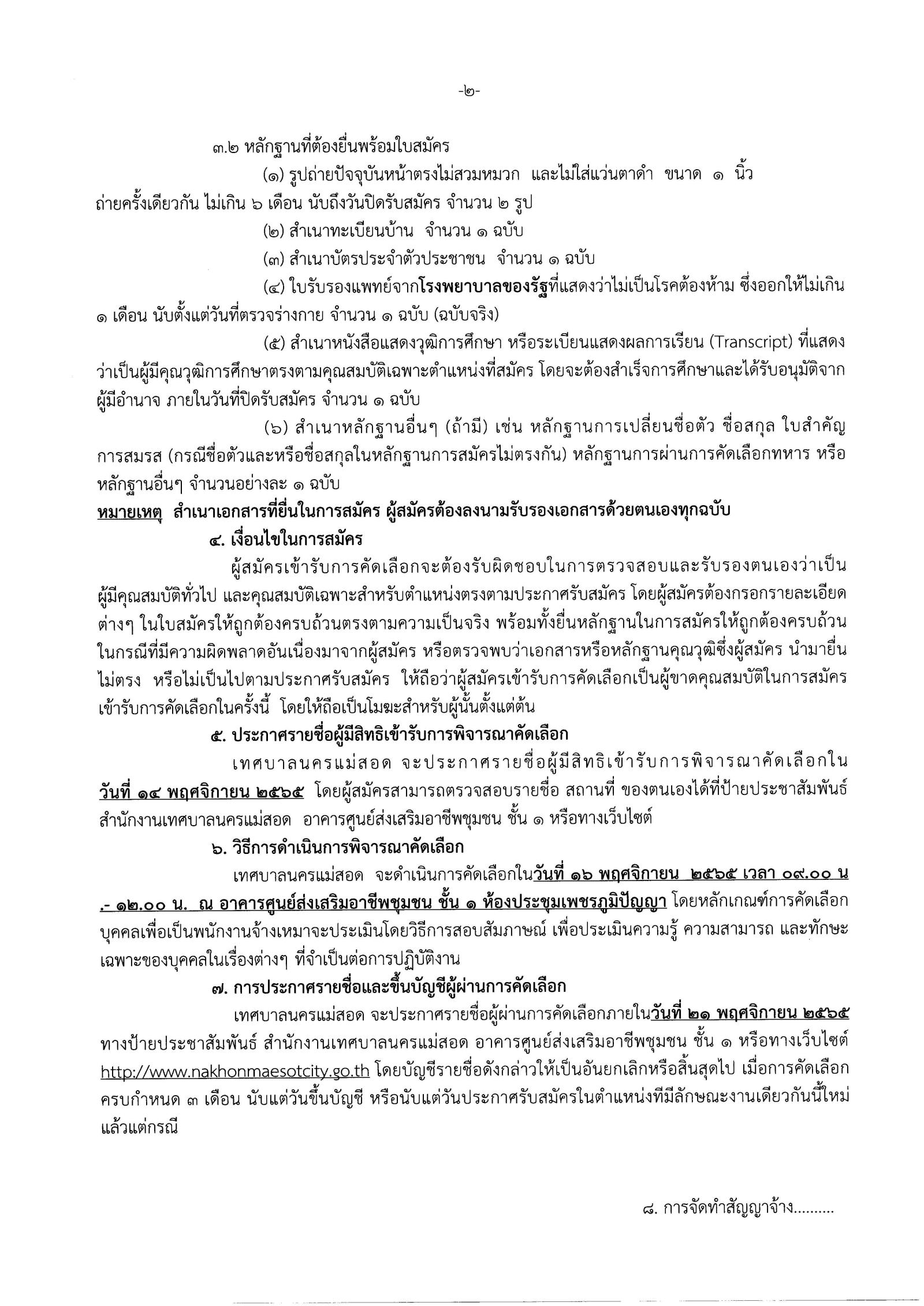ประกาศเทศบาลนครแม่สอด เรื่อง รับสมัครบุคคลเพื่อสรรหาและเลือกสรรเป็นพนักงานจ้าง