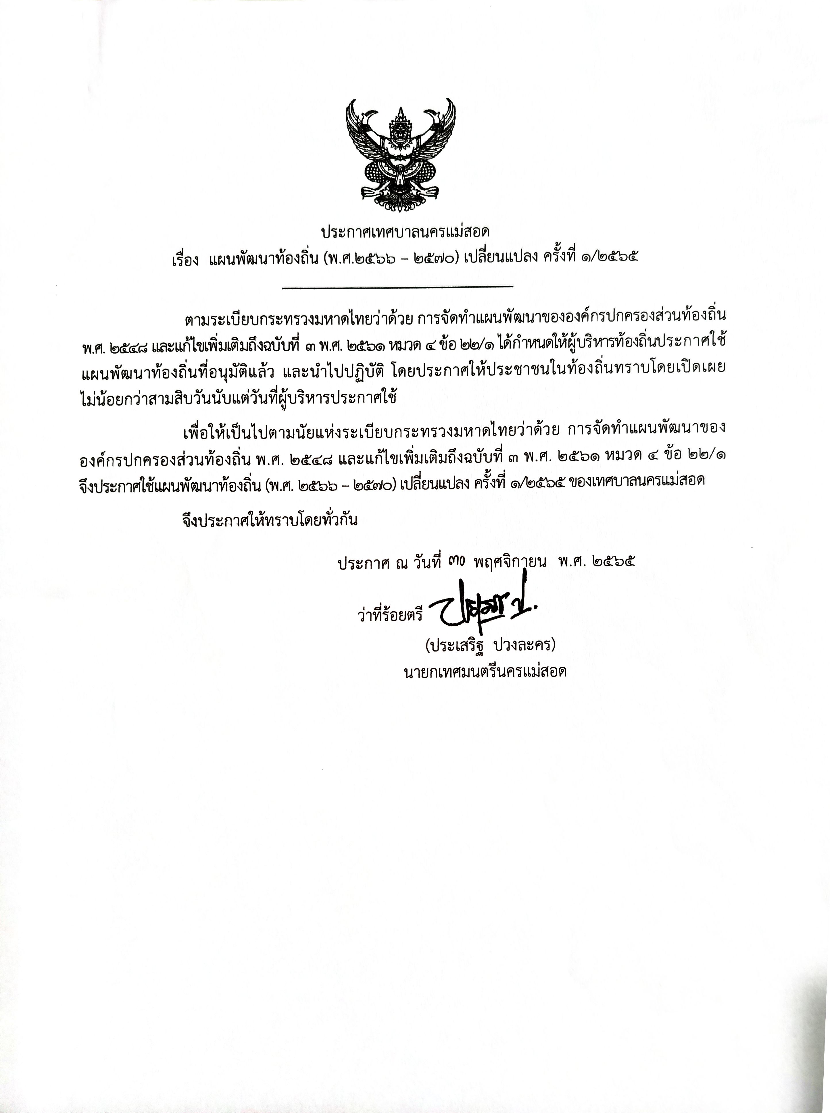ประกาศเทศบาลนครแม่สอด เรื่อง แผนพัฒนาท้องถิ่น (พ.ศ.2566-2570)เปลี่ยนแปลง ครั้งที่12565.jpg