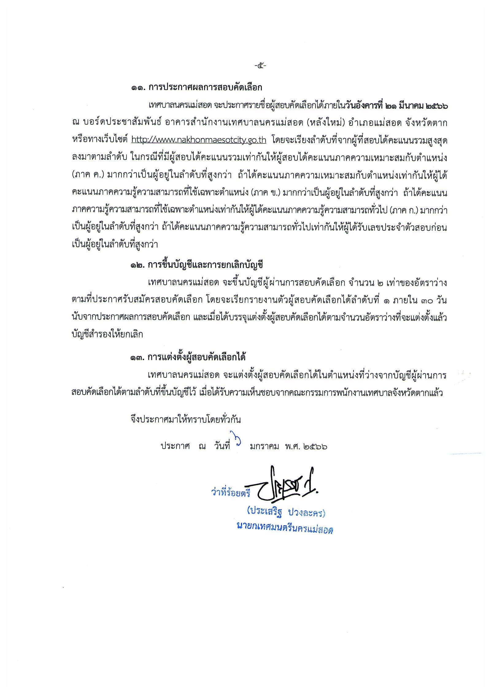 ประกาศเทศบาลนครแม่สอด เรื่อง รับสมัครบุคคลเพื่อสรรหาและเลือกสรรเป็นพนักงานจ้าง