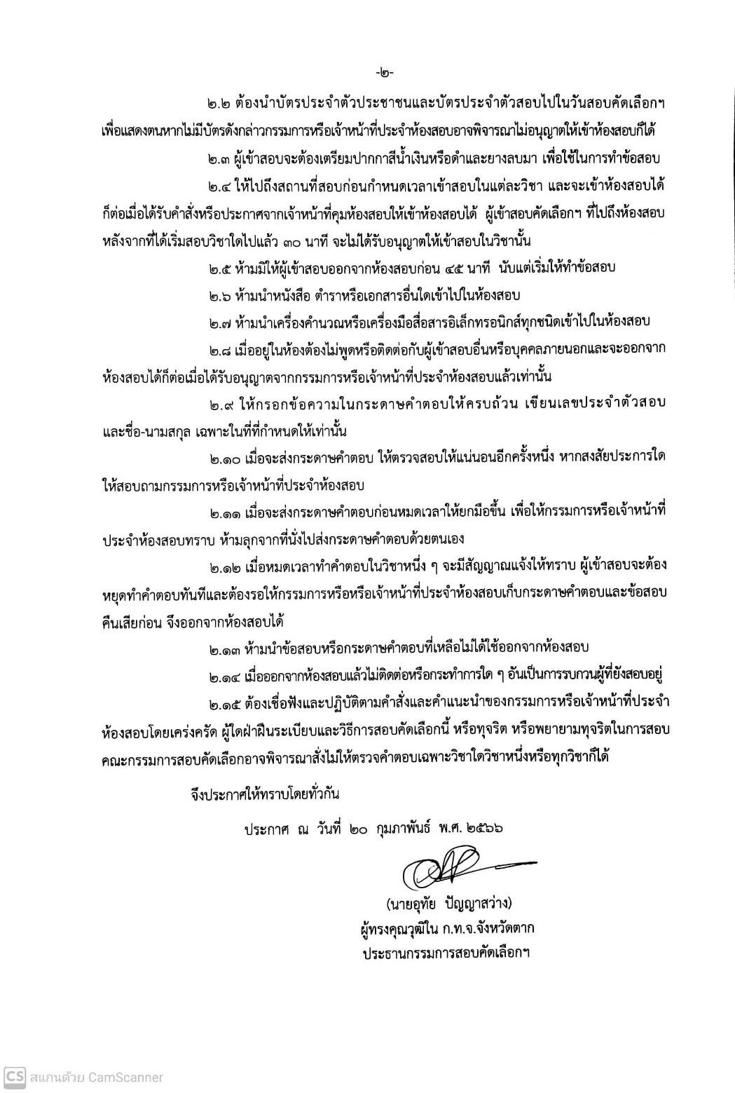 ประกาศคณะกรรมการสอบคัดเลือกพนักงานเทศบาลให้ดำรงตำแหน่งต่างสายงานจากตำแหน่งสายงานประเภททั่วไปให้ดำรงตำแหน่งสายงานประเภทวิชาการ ตำแหน่ง นักจัดการงานเทศกิจ ลงวันที่ 20 กุมภาพันธ์ 2566 เรื่อง กำหนดวัน เวลา สถานที่สอบข้อเขียนและระเบียบเกี่ยวกับการสอบคัดเลือก