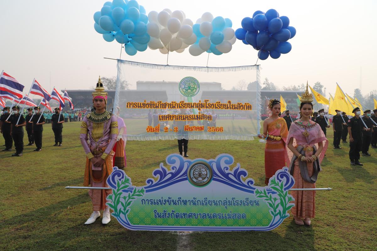 ว่าที่ร้อยตรี ประเสริฐ ปวงละคร นายกเทศมนตรีนครแม่สอด เป็นประธานพิธีเปิดการแข่งขันกีฬานักเรียนกลุ่มโรงเรียนในสังกัดฯ พร้อมคณะผู้บริหาร สมาชิกสภาเทศบาลนครแม่สอด ปลัดเทศบาล และรองปลัดเทศบาล ผู้อำนวยการกอง และเจ้าหน้าที่เกี่ยวข้องเทศบาลนครแม่สอด เข้าร่วมเป็นเกียรติพิธีเปิดการแข่งขันกีฬานักเรียนกลุ่มโรงเรียนในสังกัดเทศบาลนครแม่สอด ประจำปี 2566