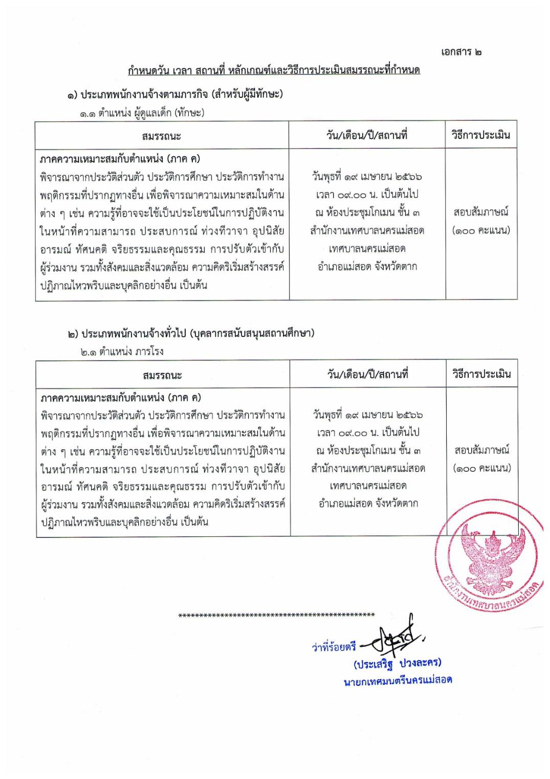 ประกาศเทศบาลนครแม่สอด เรื่อง รายชื่อผู้มีสิทธิเข้ารับการประเมินภาค ค (สัมภาษณ์) เพื่อสรรหาและเลือกสรรบุคคลเป็นพนักงานจ้างในสถานศึกษา