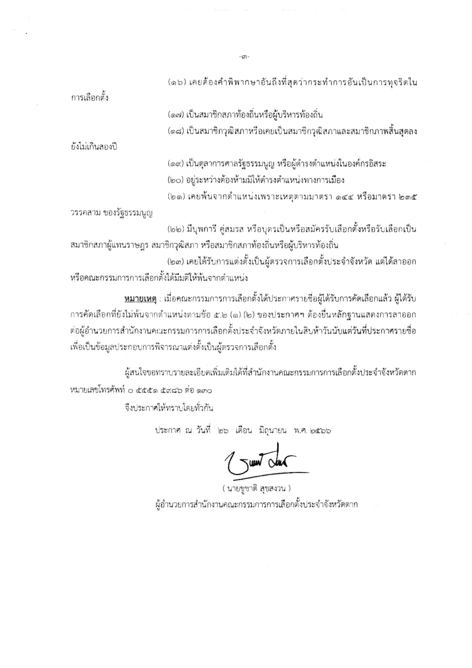 ประกาศสำนักงานคณะกรรมการการเลือกตั้งประจำจังหวัดตาก เรื่อง การรับสมัครบุคคลเข้ารับการคัดเลือกเพื่อแต่งตั้งเป็นผู้ตรวจการเลือกตั้ง