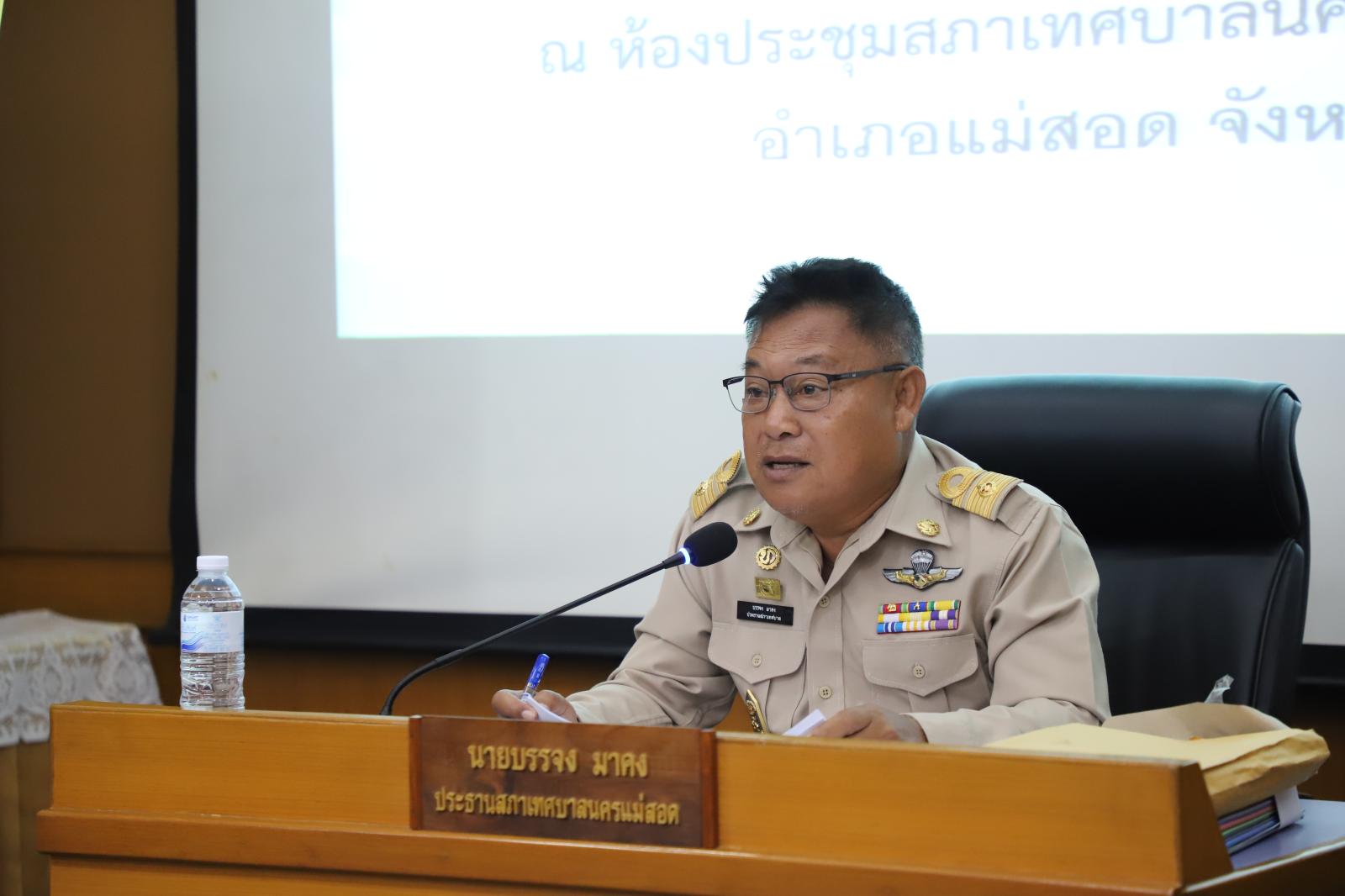 นายบรรจง มาคง ประธานสภาเทศบาล เป็นประธานการประชุมสภาเทศบาลนครแม่สอด สมัยสามัญ สมัยที่ 3 ครั้งที่ 1 ประจำปี 2566 โดยมีว่าที่พันตรี ดร.ไพฑูรย์ ปริญญาธรรมกุล ผู้อำนวยการกองยุทธศาสตร์และงบประมาณทำหน้าที่เลขานุการสภาเทศบาล พร้อมสมาชิกสภาเทศบาล ทั้ง 4 เขตเลือกตั้ง