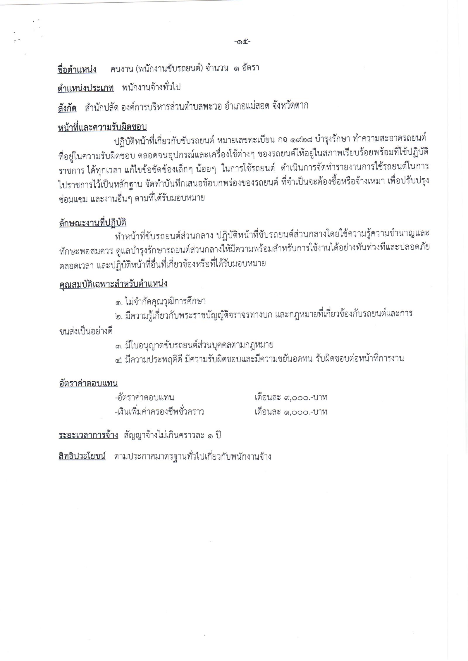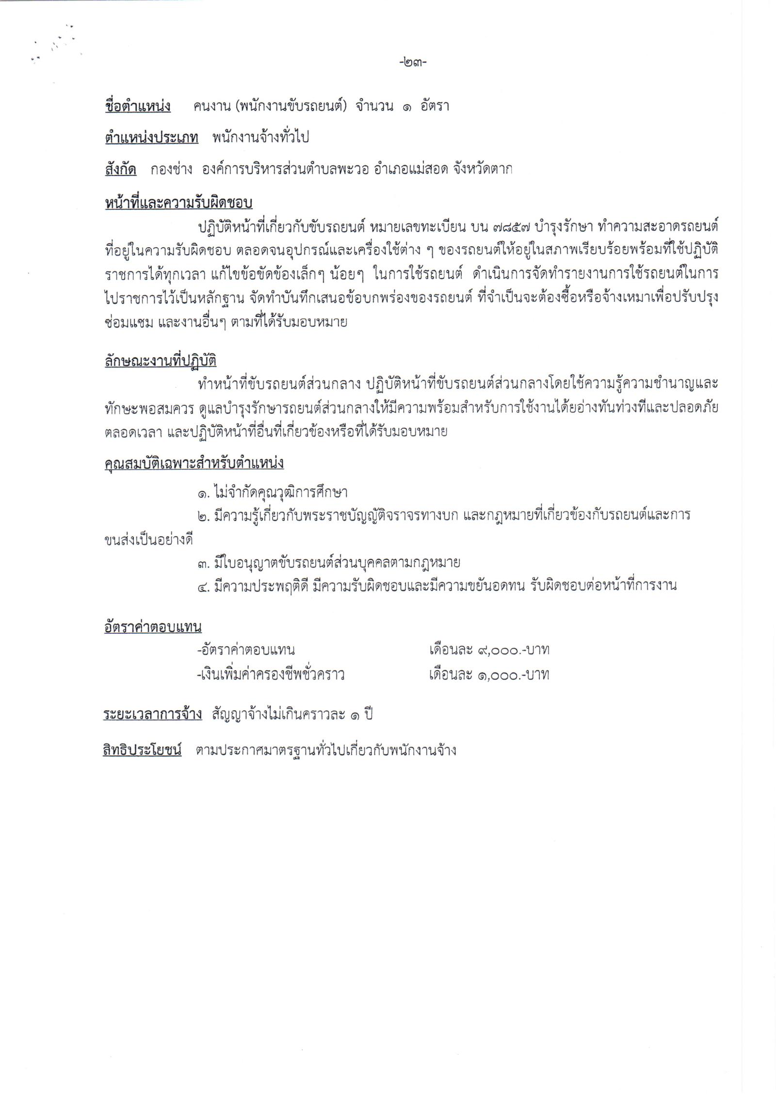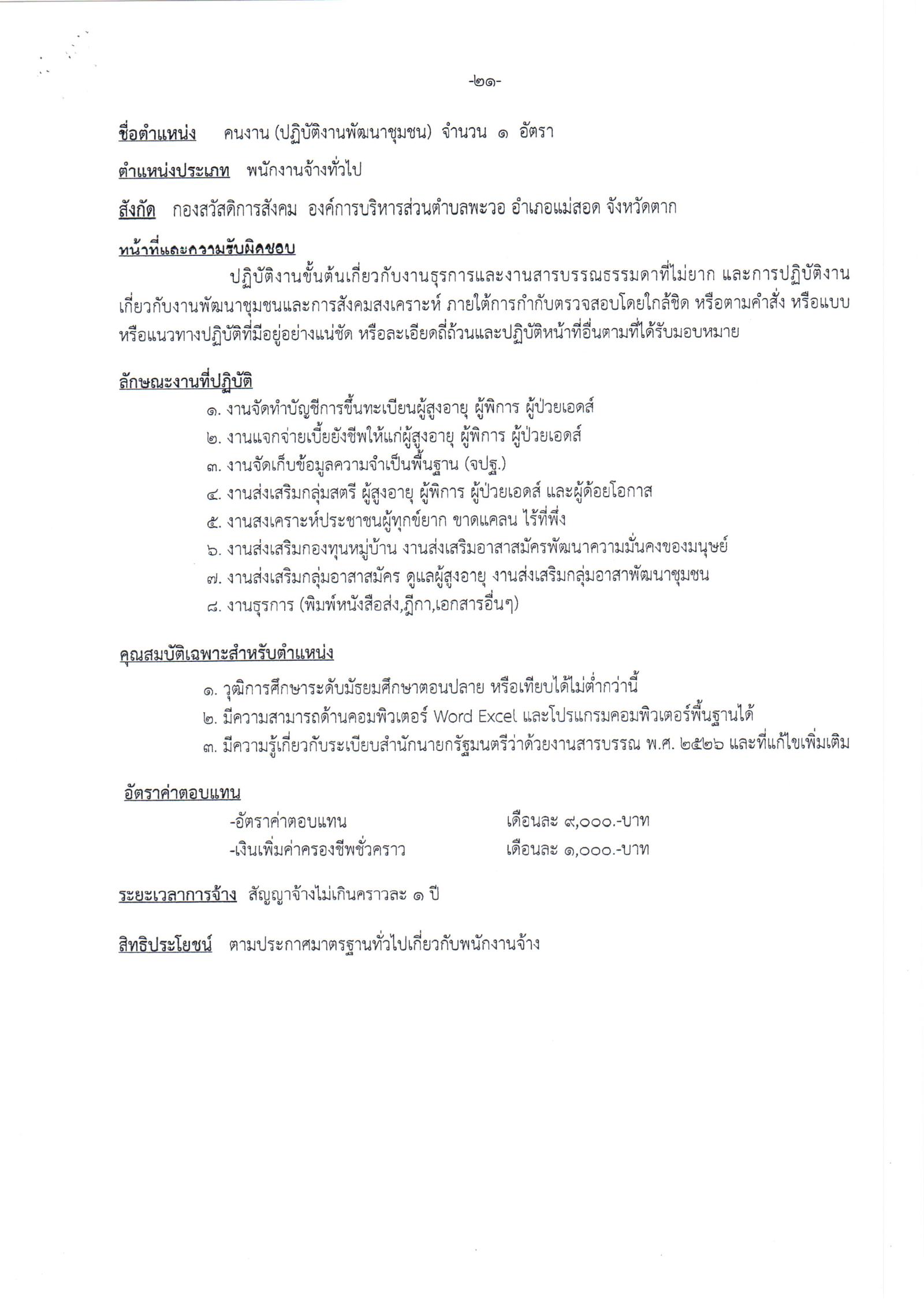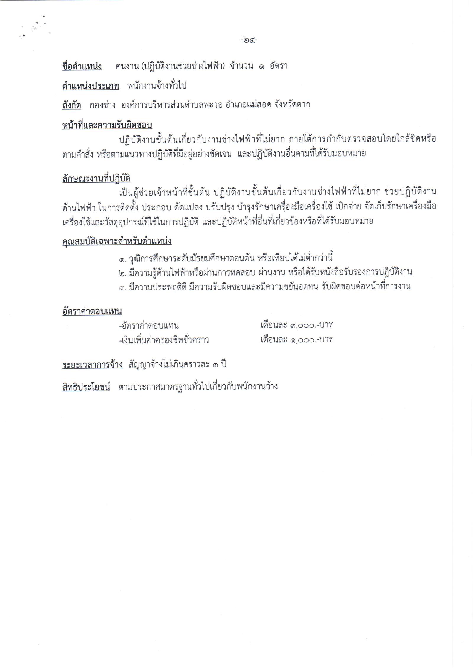 เทศบาลนครแม่สอด รับโอน (ย้าย) พนักงานเทศบาลหรือพนักงานส่วนท้องถิ่นอื่น มาดำรงตำแหน่งที่ว่าง