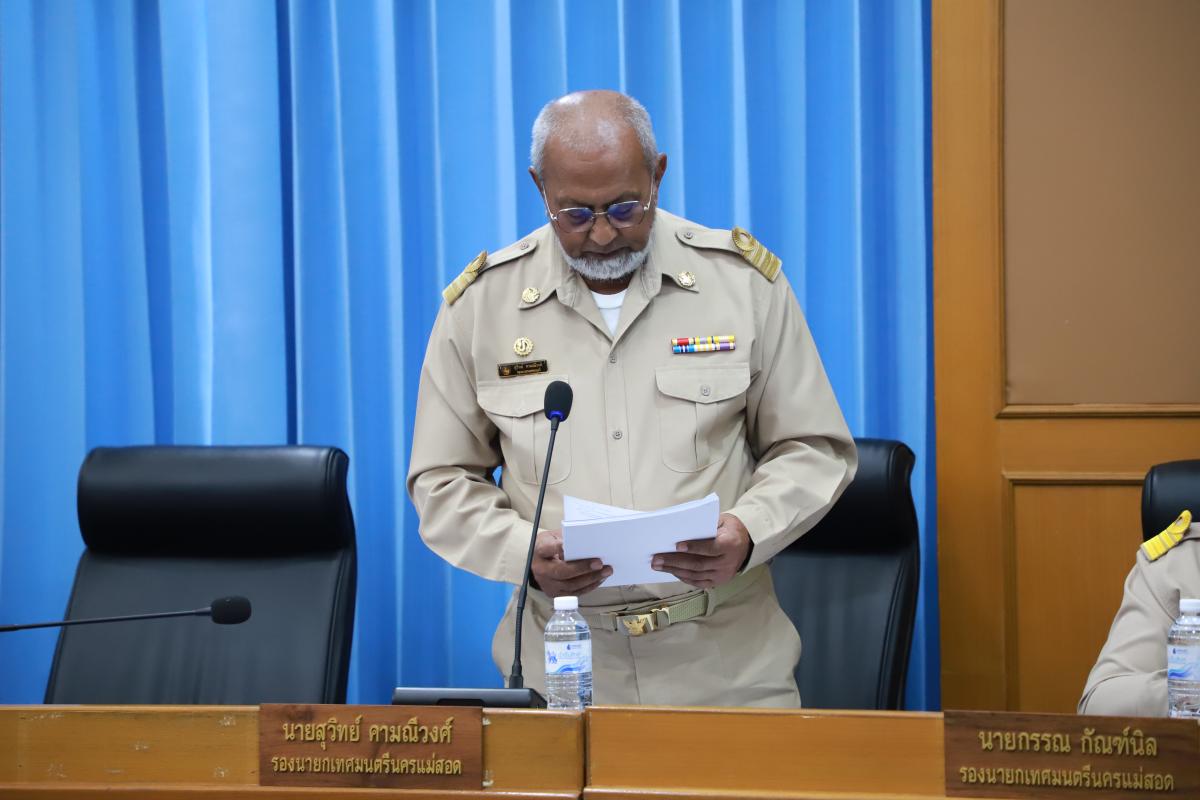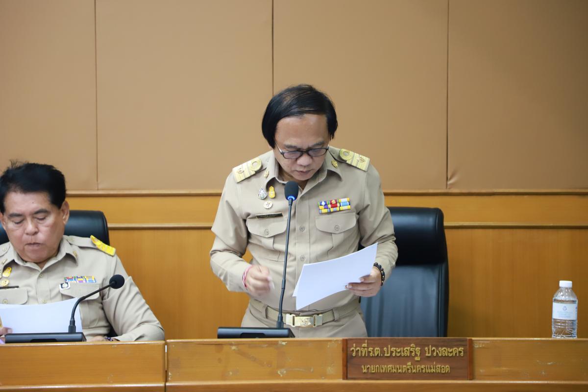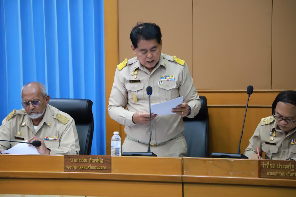 โดยนายบรรจง มาคง ประธานสภาเทศบาล และว่าที่พันตรี ดร.ไพฑูรย์ ปริญญาธรรมกุล ผู้อำนวยการกองยุทธศาสตร์และงบประมาณ ทำหน้าที่เลขานุการสภาเทศบาล โดยมีนายกเทศมนตรีนครแม่สอด พร้อมด้วยคณะผู้บริหาร สมาชิกสภาเทศบาล และหัวหน้าส่วนราชการ เข้าร่วมการประชุมโดยพร้อมเพรียงกัน