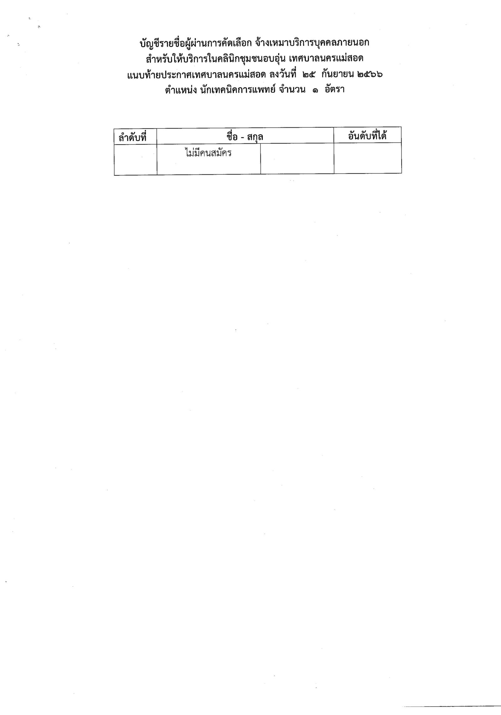 ประกาศเทศบาลนครแม่สอด เรื่อง การรับสมัครบุคคลภายนอกสำหรับให้บริการในคลินิกชุมชนอบอุ่น เทศบาลนครแม่สอด ประจำปีงบประมาณ พ.ศ.2569 จำนวน 4 อัตรา