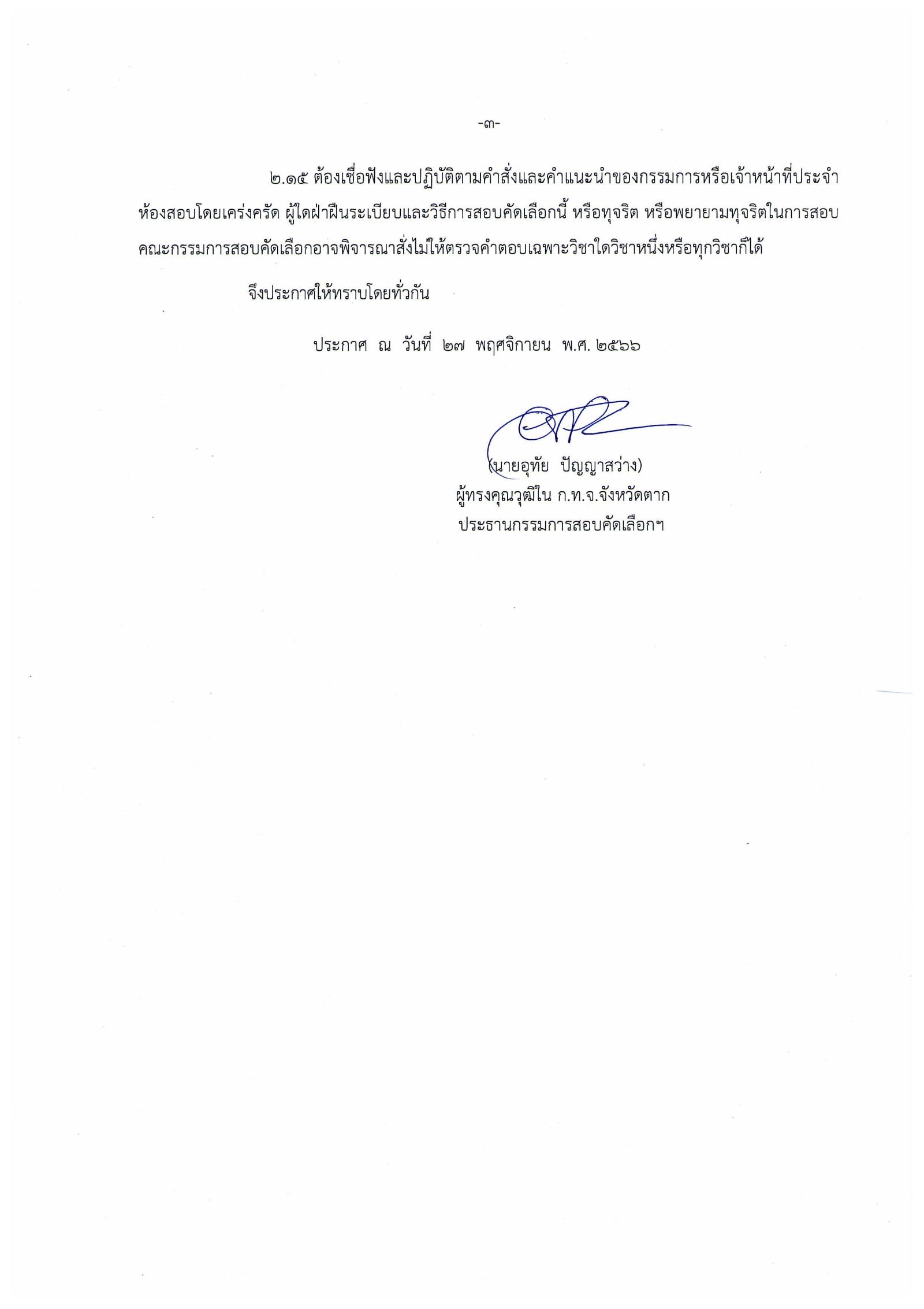 ประกาศคณะกรรมการสอบคัดเลือกพนักงานเทศบาลให้ดำรงตำแหน่งต่างสายงานจากตำแหน่งสายงานประเภททั่วไปให้ดำรงตำแหน่งสายงานประเภทวิชาการ ลงวันที่ 27 พฤศจิกายน2566 เรื่อง กำหนดวัน เวลา สถานที่สอบ และระเบียบเกี่ยวกับการสอบคัดเลือกฯ