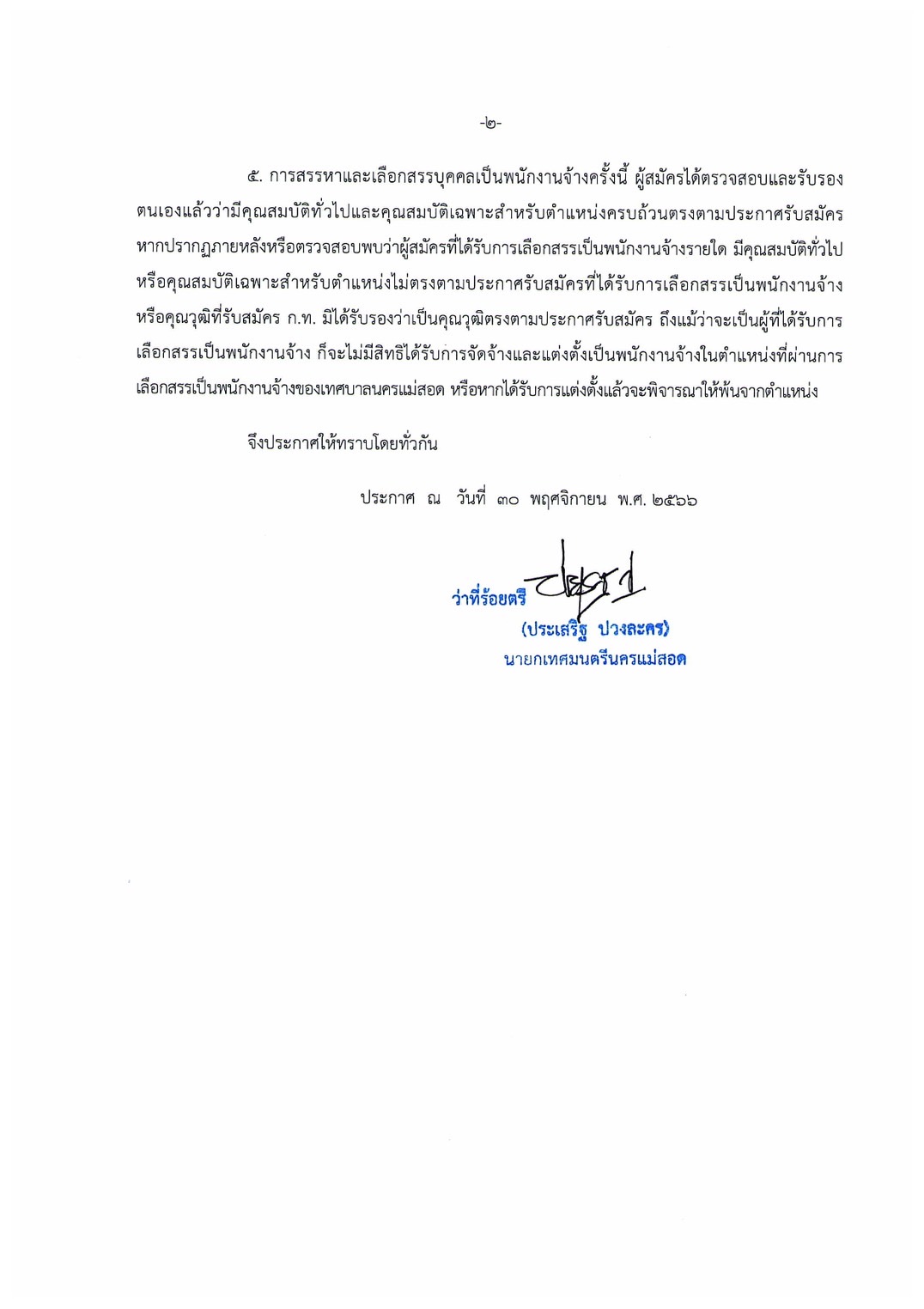 ประกาศเทศบาลนครแม่สอด เรื่อง รับสมัครบุคคลเพื่อสรรหาและเลือกสรรเป็นพนักงานจ้าง