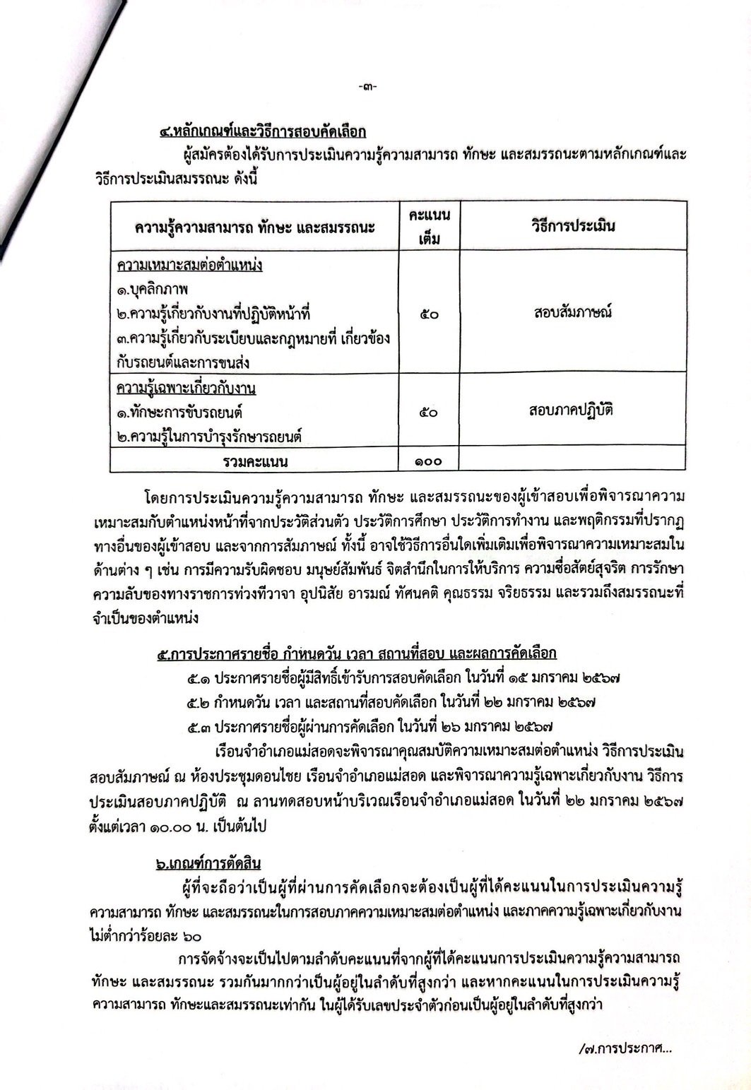 ประกาศจังหวัดตาก เรื่อง รับสมัครสอบบุคคลเพื่อเลือกสรรเป็นพนักงานจ้างเหมาขับรถยนต์ สังกัดเรือนจำอำเภอแม่สอด ประจำปีงบประมาณ พศ.2567