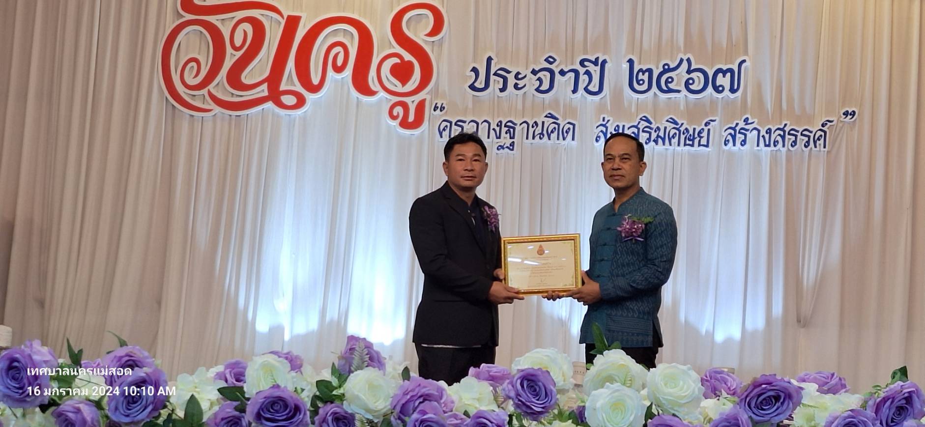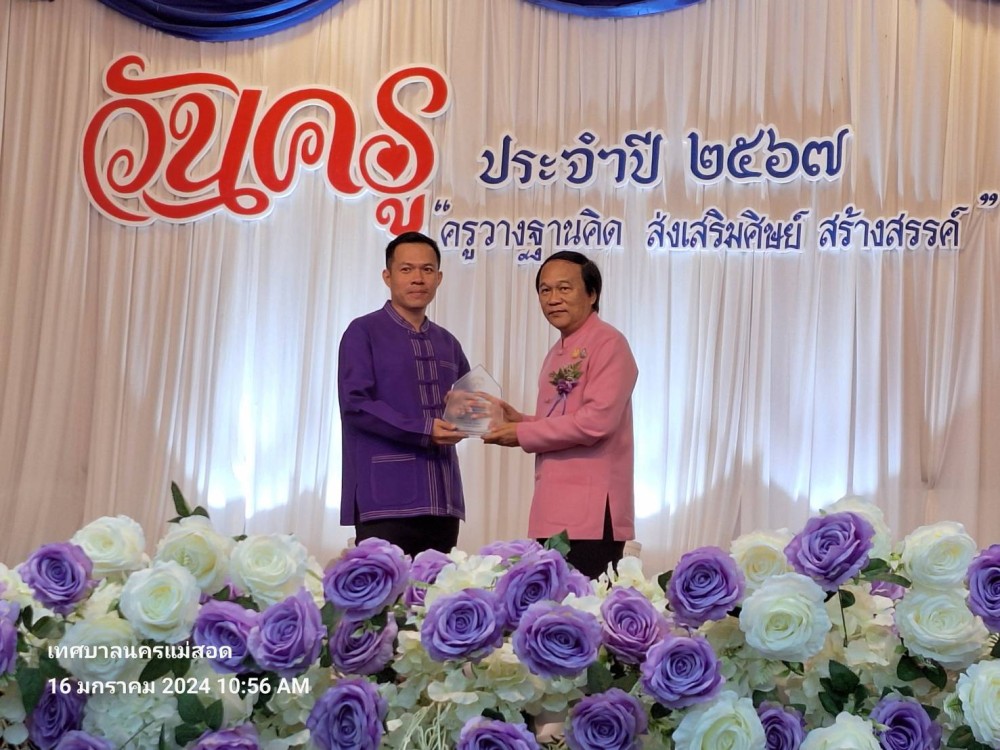 ว่าที่ร้อยตรี ประเสริฐ ปวงละคร นายกเทศมนตรีนครแม่สอด พร้อมด้วยคณะผู้บริหาร สมาชิกสภาเทศบาล ปลัดเทศบาล รองปลัดเทศบาล ผู้อำนวยการกอง ข้าราชการ และพนักงานเทศบาลนคร แม่สอด ผู้อำนวยการสถานศึกษา และคณะครู อาจารย์ เข้าร่วมเป็นเกียรติในกิจกรรมวันครูแห่งชาติ ประจำปี 2567 โดยนายเศรษฐา ทวีสิน นายกรัฐมนตรี มอบคำขวัญวันครู ปีนี้คือ "ครูวางฐานคิด ส่งเสริมศิษย์สร้างสรรค์“ และพิธีทำบุญตักบาตรข้าวสารอาหารแห้ง พระภิกษุ สามเณร จำนวน 9 รูปพิธีบูชาบูรพาจารย์ พิธีมอบโล่ – เกียรติบัตรให้แก่ข้าราชการครูและบุคลากรทางการศึกษาดีเด่น เพื่อระลึกถึงพระคุณครูบูรพาจารย์ เนื่องจากครูเป็นผู้ทรงคุณค่าที่มีบทบาทสำคัญต่อกระบวนการสร้างทรัพยากรบุคคลของชาติ บ่มเพาะเด็กและเยาวชนให้มีความรู้ มีจิตสำนึกที่ดีต่อไป โดยนายสัญญา เพชรเศษ นายอำเภอแม่สอด ให้เกียรติเป็นประธานในพิธีดังกล่าว