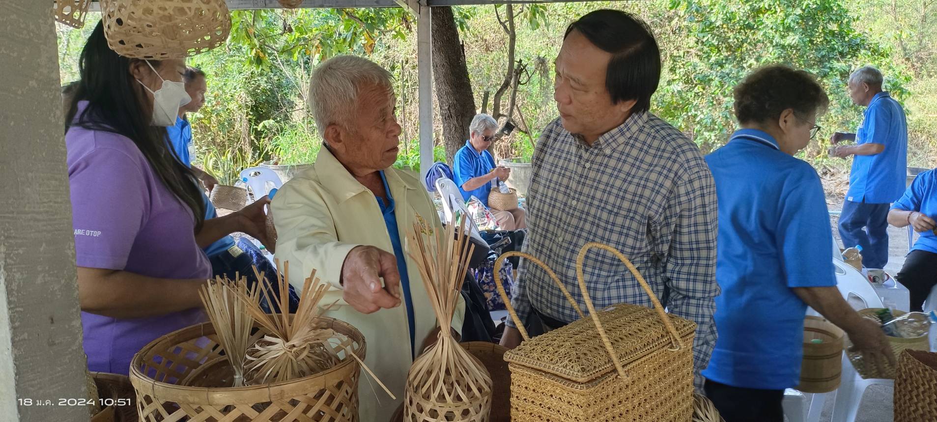 ว่าที่ร้อยตรี ประเสริฐ ปวงละคร นายกเทศมนตรีนครแม่สอด พร้อมด้วยคณะผู้บริหาร สมาชิกสภาเทศบาล และเจ้าหน้าที่ที่เกี่ยวข้อง ร่วมกิจกรรมของกลุ่มผู้สูงอายุเทศบาลนครแม่สอดและศึกษาดูงานโครงการพัฒนาทักษะอาชีพแก่สตรี และครอบครัวสู่ความยั่งยืนของสตรีและครอบครัว โครงการพัฒนาทักษะอาชีพแก่ครัวเรือนเปราะบางสู่ความยั่งยืน กิจกรรมสร้างชีวิตใหม่ให้แก่สตรีและครอบครัวประจำปีงบประมาณ 2567 หลักสูตรผลิตภัณฑ์จักสานไม้ไผ่ วิสาหกิจชุมชน จักสาน สิ่งประดิษฐ์จากไม้ไผ่ ณ บ้านเพชรชมพู ตำบลนาโบสถ์ อำเภอวังเจ้า จังหวัดตาก