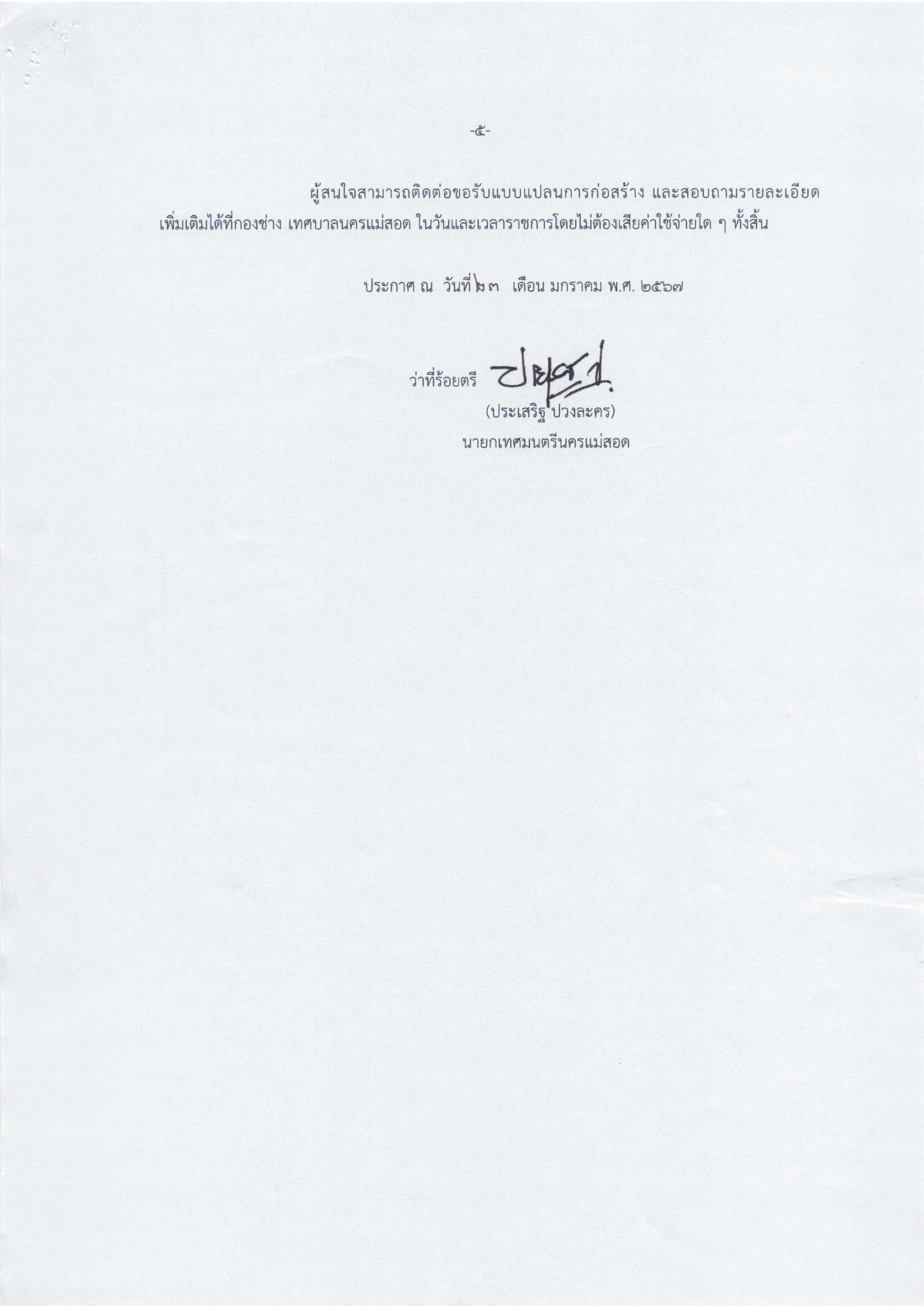 ประกาศเทศบาลนครแม่สอด เรื่อง ให้ยื่นแบบพิมพ์ชำระภาษีป้าย ประจำปี พ.ศ. 2569