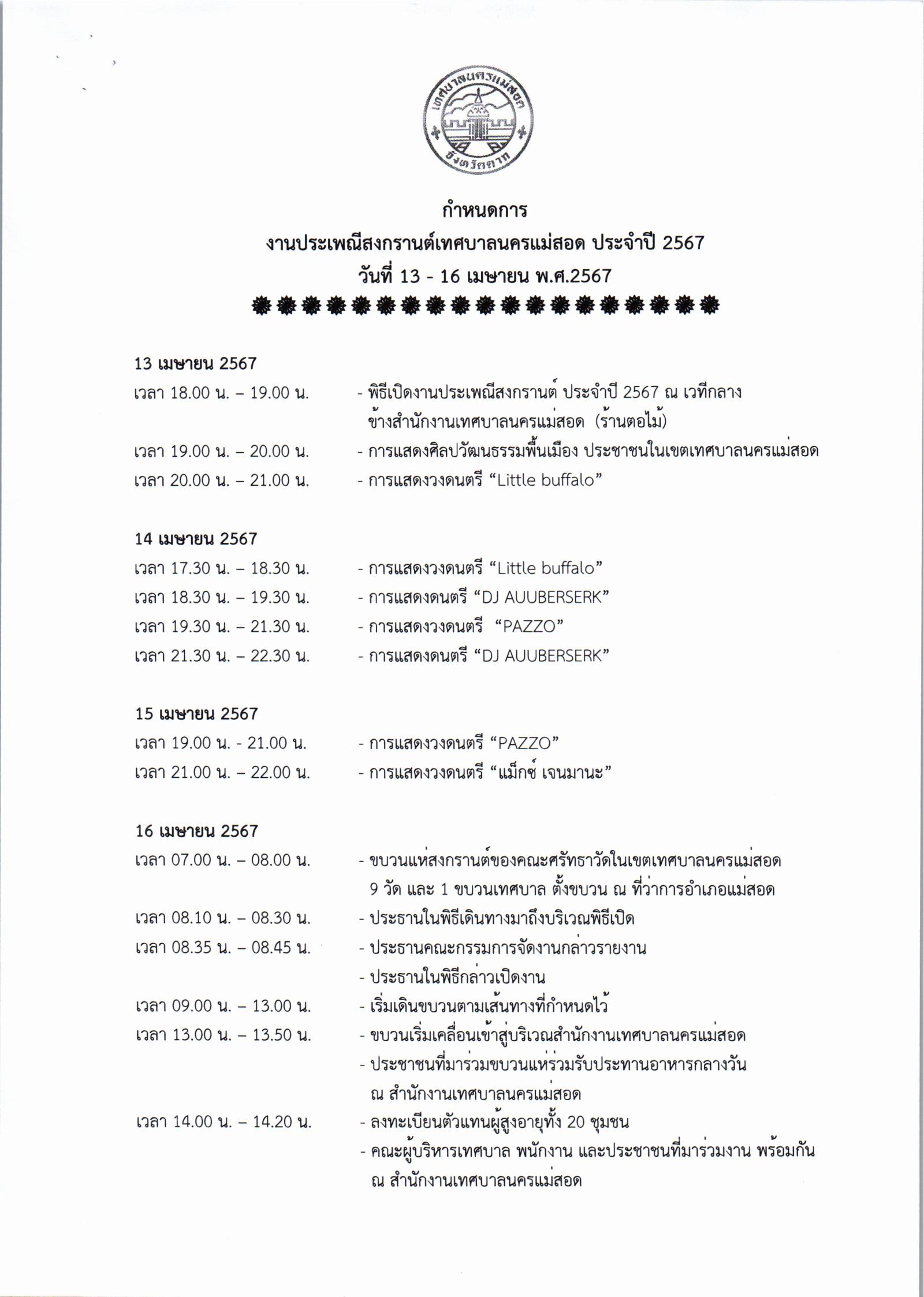 เทศบาลนครแม่สอดขอประชาสัมพันธ์ แจ้งกำหนดการ / ผังการจัดงาน / ผังเส้นทางขบวนแห่สงกรานต์ และ หลักเกณฑ์พร้อมใบสมัครเข้าการประกวดเทพีสงกรานต์เทศบาลนครแม่สอด ประจำปี 2567 ในระหว่างวันที่ 13-16 เมษายน 2567นี้