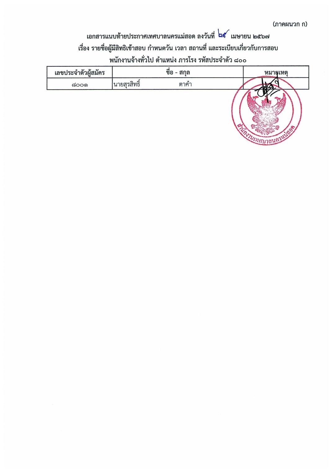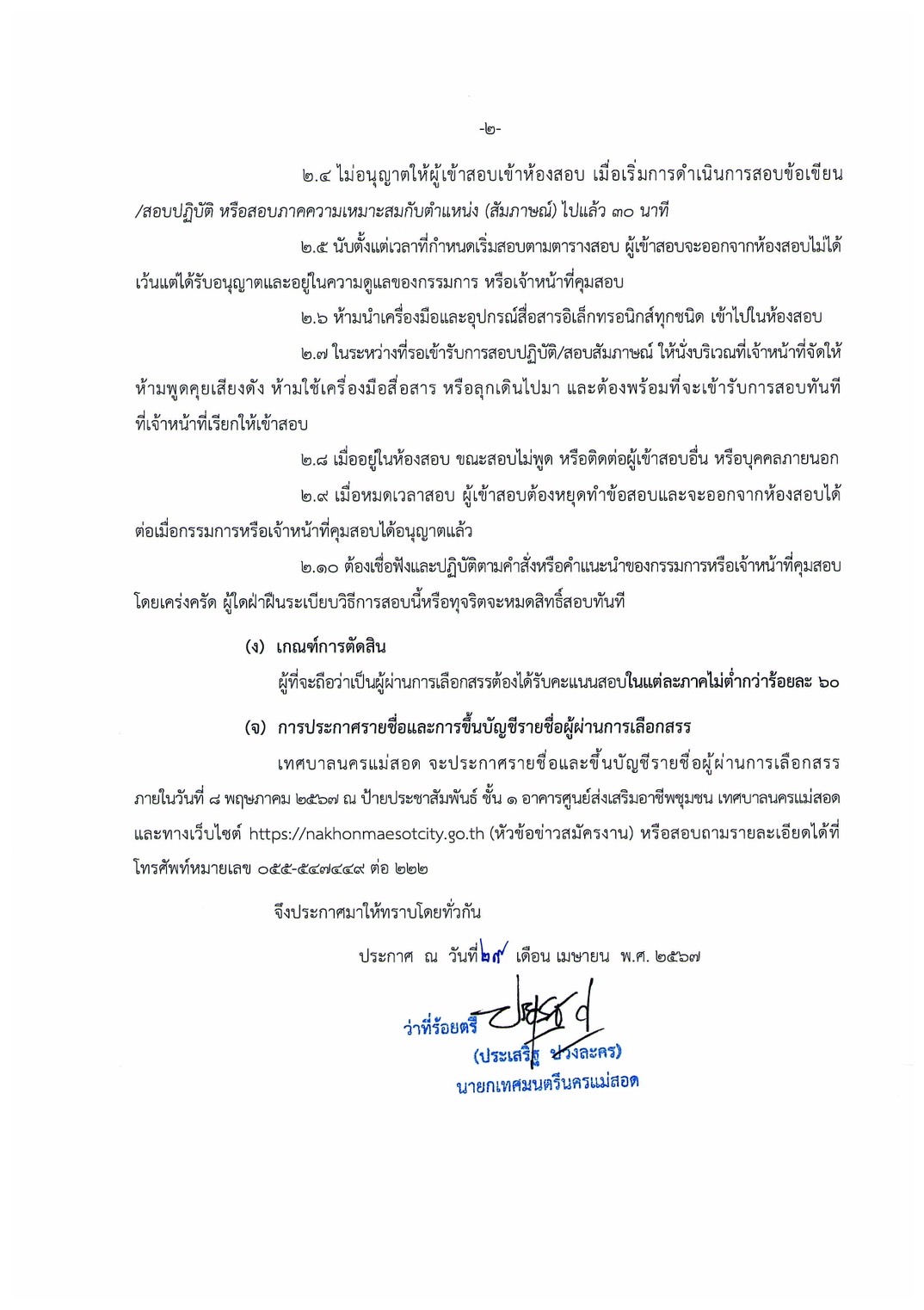 ประกาศเทศบาลนครแม่สอด เรื่อง ประกาศรายชื่อผู้มีสิทธิเข้าสอบ กำหนดวัน เวลา สถานที่ และระเบียบเกี่ยวกับการสอบ