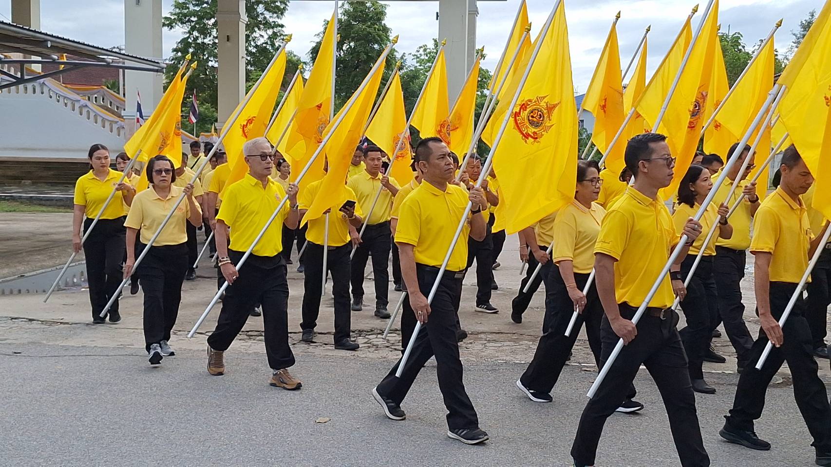 โดยมี นายสมชัย กิจเจริญรุ่งโรจน์ ผู้ว่าราชการจังหวัดตาก เป็นประธานในพิธีพร้อมด้วยหัวหน้าส่วนราชการ ข้าราชการ ศาล ทหาร ตำรวจ และขบวนธง 72 ธง โดยเคลื่อนขบวนจากศาลากลางจังหวัดตาก ไปส่งมอบธงตราสัญลักษณ์ฯ ให้กับผู้ว่าราชการจังหวัดสุโขทัย ที่เขตรอยต่อระหว่างจังหวัดตาก กับจังหวัดสุโขทัย ที่บริเวณสนามโรงเรียนหนองหญ้าปล้อง อำเภอบ้านด่านลานหอย จังหวัดสุโขทัย ต่อไป ทั้งนี้กระทรวงมหาดไทย ได้จัดกิจกรรมเดิน วิ่ง ปั่น ธงตราสัญลักษณ์งานเฉลิมพระเกียรติพระบาทสมเด็จ พระเจ้าอยู่หัวฯ ขึ้น เพื่อให้ทุกภาคส่วนได้มีส่วนร่วมในการแสดงความจงรักภักดี สำนึกในพระมหากรุณาธิคุณ และสร้างความปรองดองสมานฉันท์เป็นอันหนึ่งอันเดียวกัน รวมทั้งส่งเสริมการออกกำลังกายเพื่อสุขภาพโดยกำหนดจัดกิจกรรมทุกจังหวัดทั่วประเทศ แบ่งสายการจัดกิจกรรมเป็น 10 สาย จำนวนธงสายละ 72 คันธง รวมจำนวน 720 คันธง โดยจังหวัดตาก อยู่ในสายที่ 1 มีจังหวัดที่เป็นเส้นทางในการจัดกิจกรรม เริ่มจาก จังหวัดแม่ฮ่องสอน เชียงใหม่ ลำพูน ลำปาง ตาก สุโขทัย และจังหวัดกำแพงเพชร