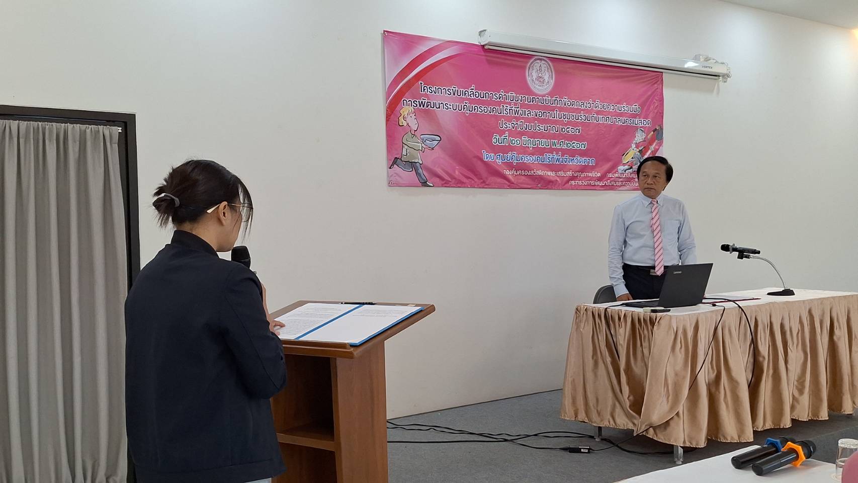 โดยมี นางสาวอุษณีย์ ยินดีสิทธิ์ ผู้อำนวยการศูนย์คุ้มครองคนไร้ที่พึ่งจังหวัดตาก เป็นผู้กล่าวรายงานโดยมีวัตถุประสงค์เพื่อสร้างความตระหนักรู้ปลูกฝังค่านิยมความรู้สึก และทัศนคติที่ถูกต้องต่อกลุ่มเป้าหมายโดยเฉพาะในกลุ่มเด็ก เยาวชน และประชาชนทั่วไป ผ่านกิจกรรมสื่อสาธารณะ และสถาบันทางสังคมในระดับพื้นที่ เช่นสถานศึกษา องค์กรทางศาสนา ชุมชนและครอบครัว ขับเคลื่อนความร่วมมือของเครือข่ายระดับพื้นที่ในการสนับสนุนการจัดสวัสดิการสังคมในพื้นที่ให้เกิดผลลัพธ์อย่างเป็นรูปธรรม และพัฒนามาตรการและกลไก รวมถึงแนวในการพัฒนาคุณภาพชีวิต