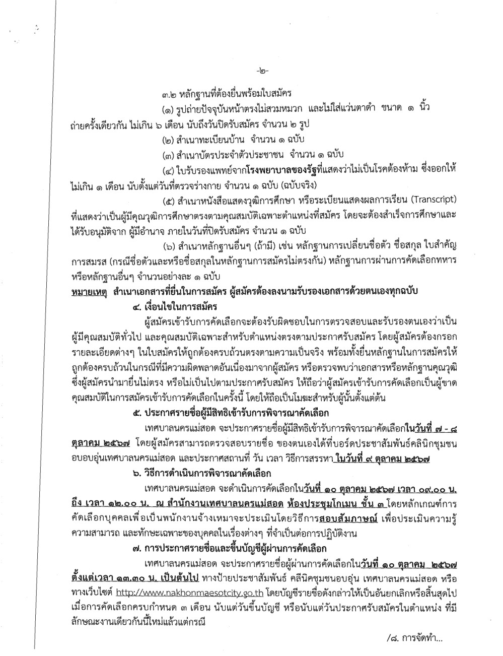 ประกาศเทศบาลนครแม่สอด เรื่อง รับสมัครบุคคลเพื่อสรรหาและเลือกสรรเป็นพนักงานจ้าง