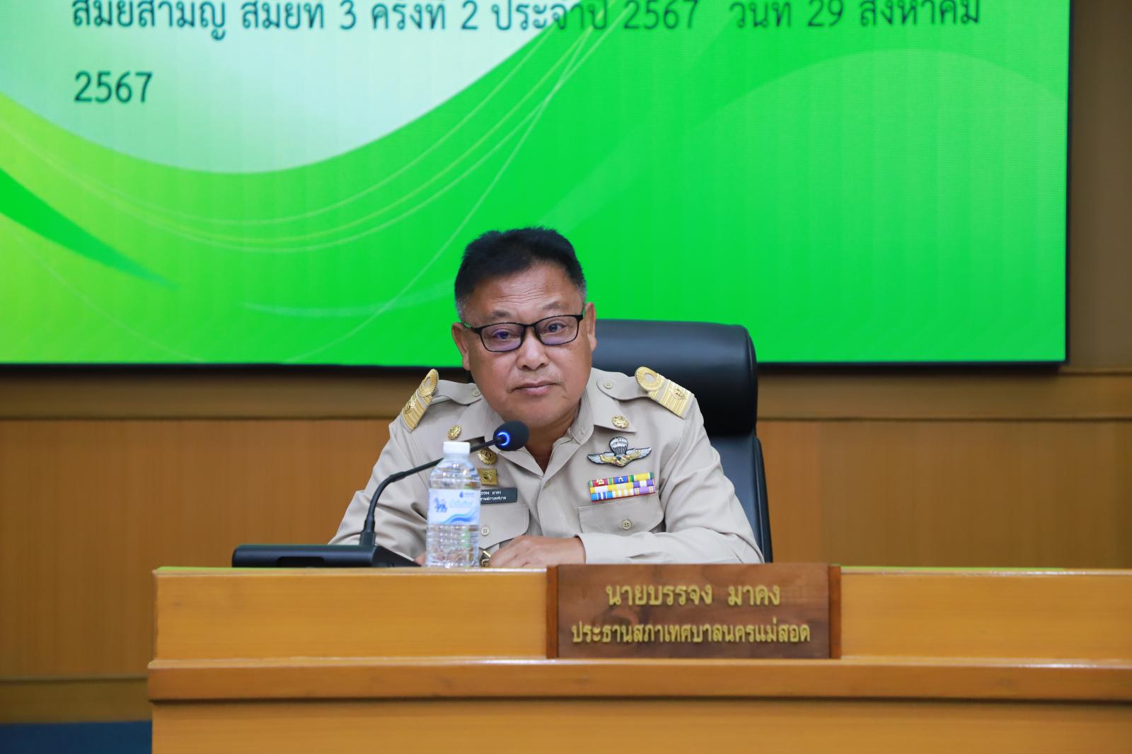 โดยนายบรรจง มาคง ประธานสภาเทศบาล และนายพงศ์พัฒน์ พะยอมยนต์ เลขานุการสภาเทศบาลนครแม่สอด โดยมีนายกเทศมนตรีนครแม่สอด พร้อมด้วย คณะผู้บริหาร สมาชิกสภาเทศบาล และหัวหน้าส่วนราชการ เข้าร่วมการประชุมโดยพร้อมเพรียงกัน ซึ่งที่ประชุม มีระเบียบวาระที่ 1 เรื่อง ประธานแจ้งให้ที่ประชุมทราบ ระเบียบวาระที่ 2 รับรองรายงานการประชุม สมัยสามัญ สมัยที่ 3 ครั้งที่ 2 ประจำปี 2567 ระเบียบวาระที่ 3 กระทู้ถาม (ไม่มี) ระเบียบวาระที่ 4 เรื่องที่ คณะกรรมการที่สภาท้องถิ่นตั้งขึ้นพิจารณาแล้วเสร็จ ระเบียบวาระที่ 5 เรื่องที่เสนอใหม่ ระเบียบวาระที่ 6 เรื่อง อื่น ๆ โดยที่ประชุมมีมติเห็นชอบร่วมกัน