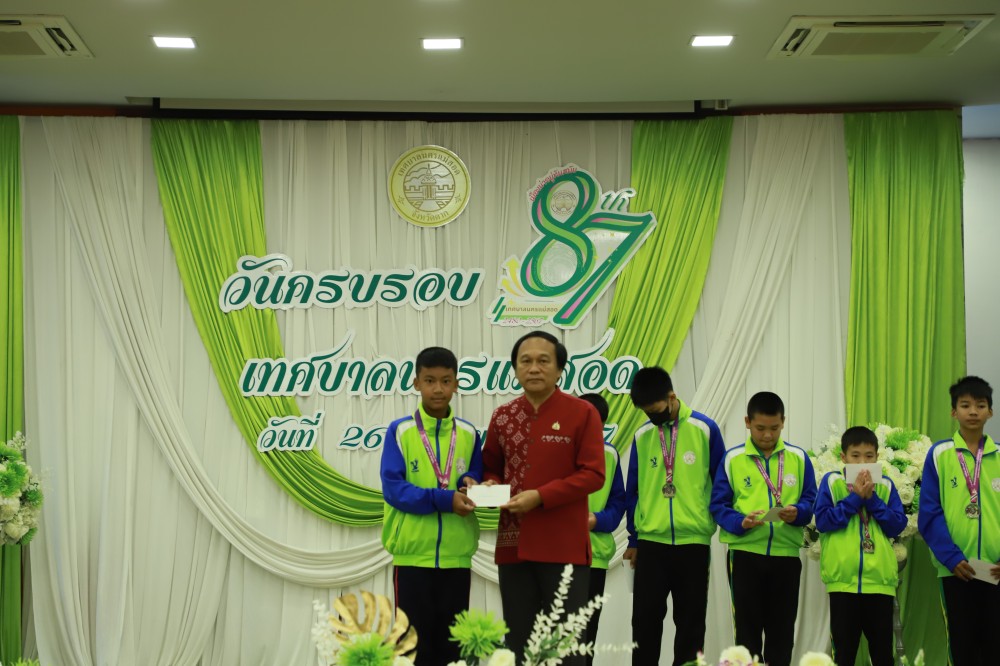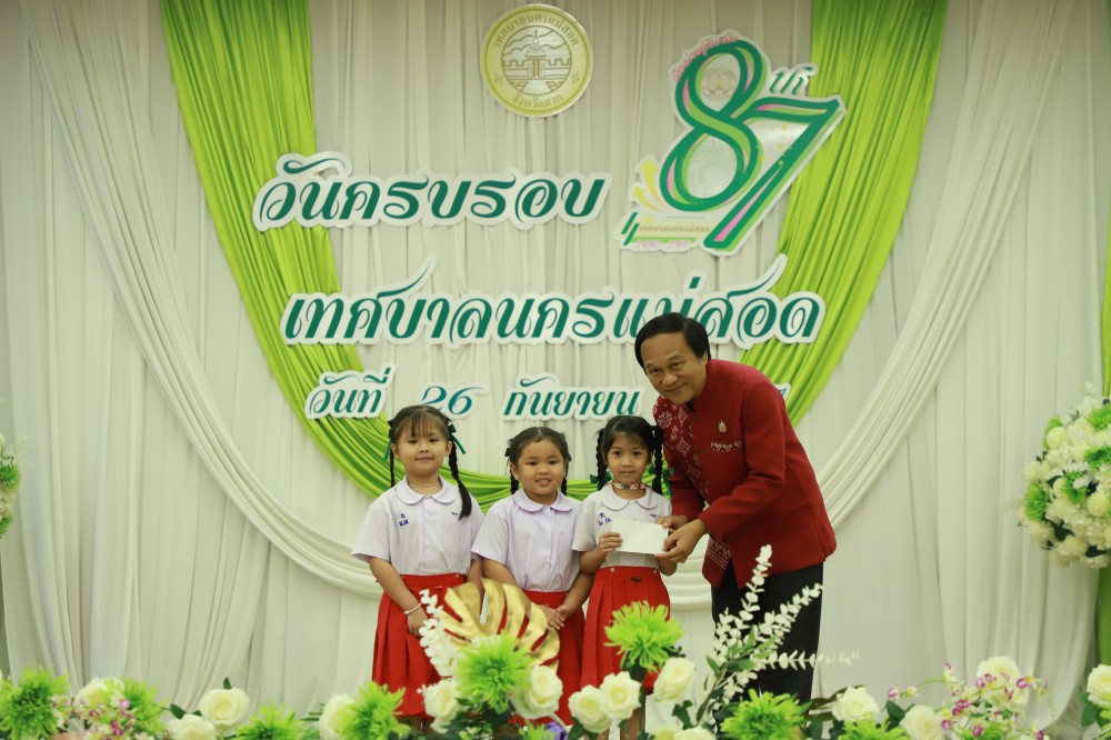 ว่าที่ร้อยตรี ประเสริฐ ปวงละคร นายกเทศมนตรีนครแม่สอด เป็นประธานเปิดฯ พร้อมด้วย คณะผู้บริหาร สมาชิกสภาเทศบาล หัวหน้าส่วนราชการ ข้าราชการ และพนักงานเทศบาลนครแม่สอด เข้าร่วมโครงการจัดงานยกย่องและเชิดชูเกียรติบุคลากรของเทศบาลนครแม่สอด พร้อมพิธีมอบรางวัลให้แก่นักกีฬาที่ได้รับเหรียญรางวัลการแข่งขันกีฬานักเรียนองค์กรปกครองส่วนท้องถิ่น ระดับประเทศ ปีงบประมาณ 2567 ณ จังหวัดร้อยเอ็ด มอบโล่รางวัลประกาศเกียรติคุณยกย่องและเชิดชูเกียรติบุคลากรของเทศบาลนครแม่สอด และโรงเรียนในสังกัดเทศบาลนครแม่สอด พร้อมฉายวิดีทัศน์ผู้ที่ได้รับโล่รางวัล พร้อมพิธีมอบโล่ประกาศเกียรติคุณแก่ผู้เกษียณอายุราชการ