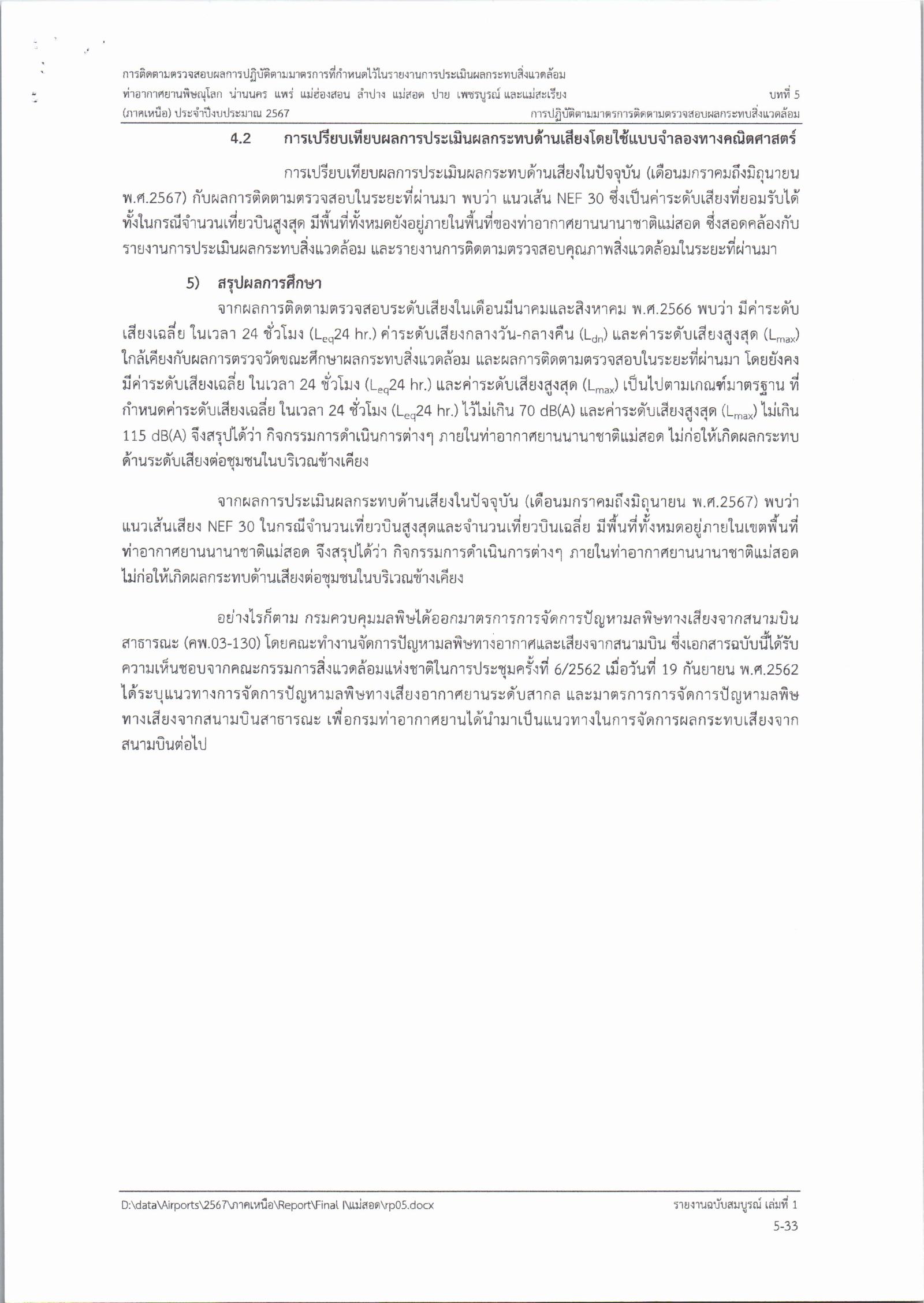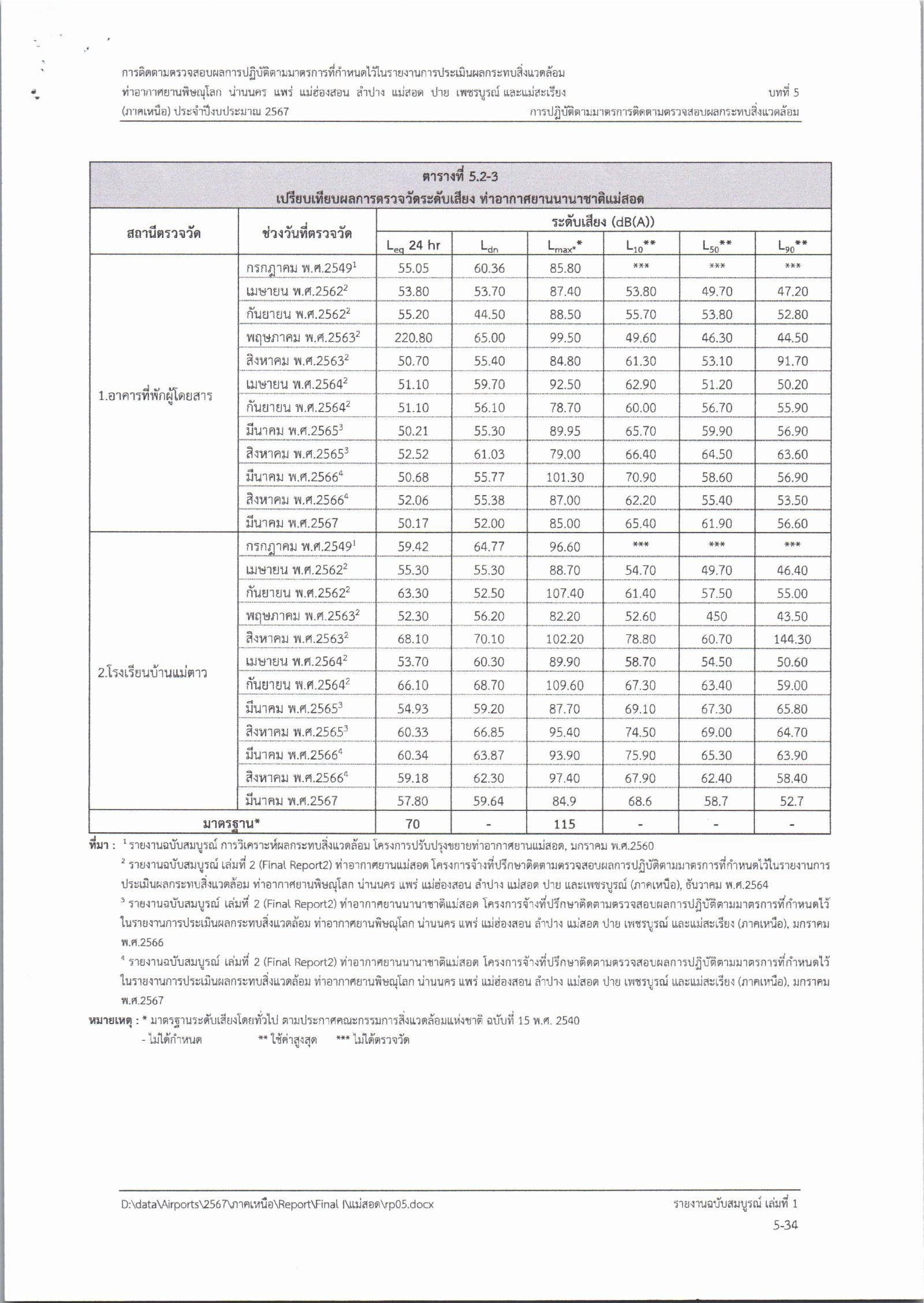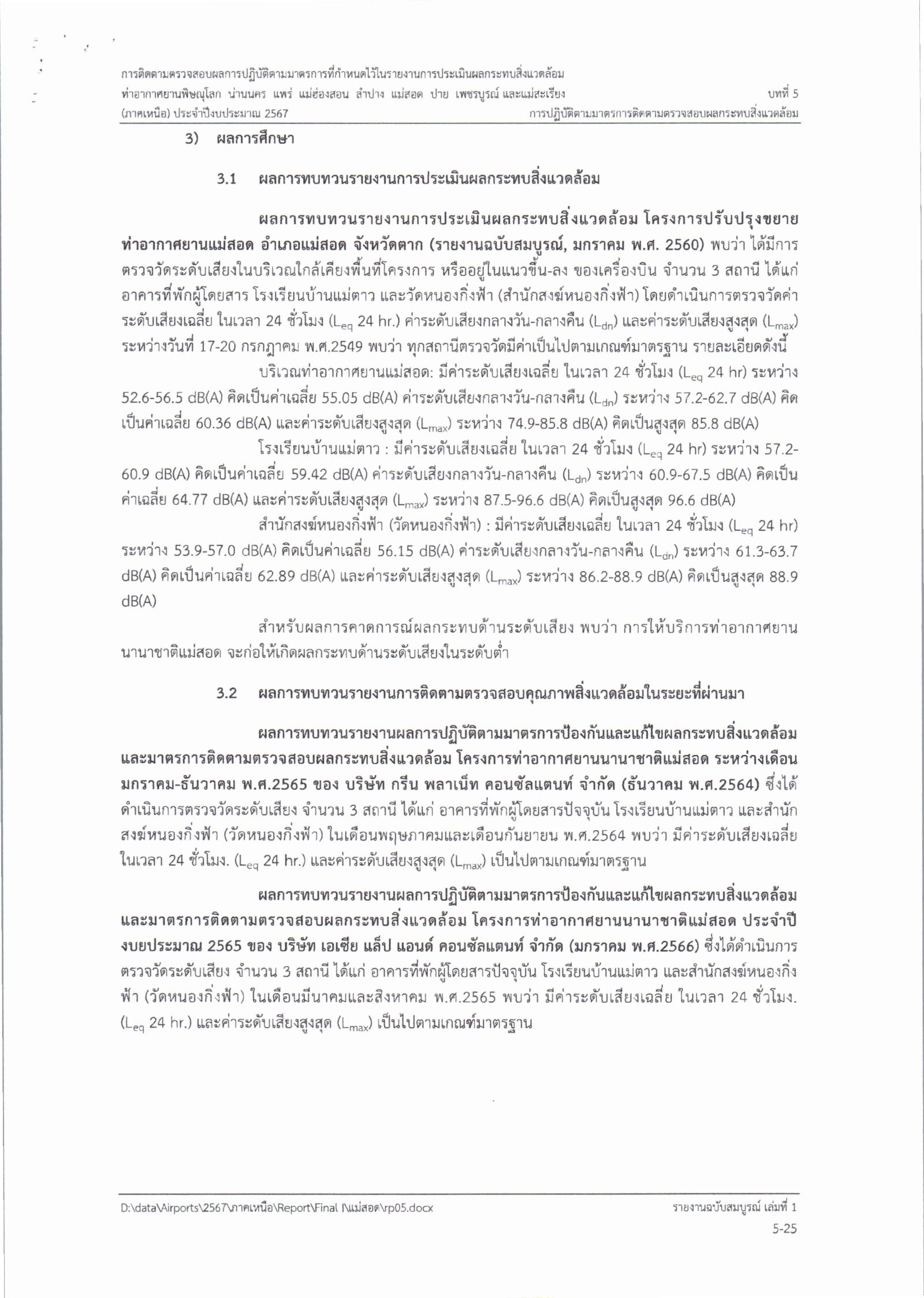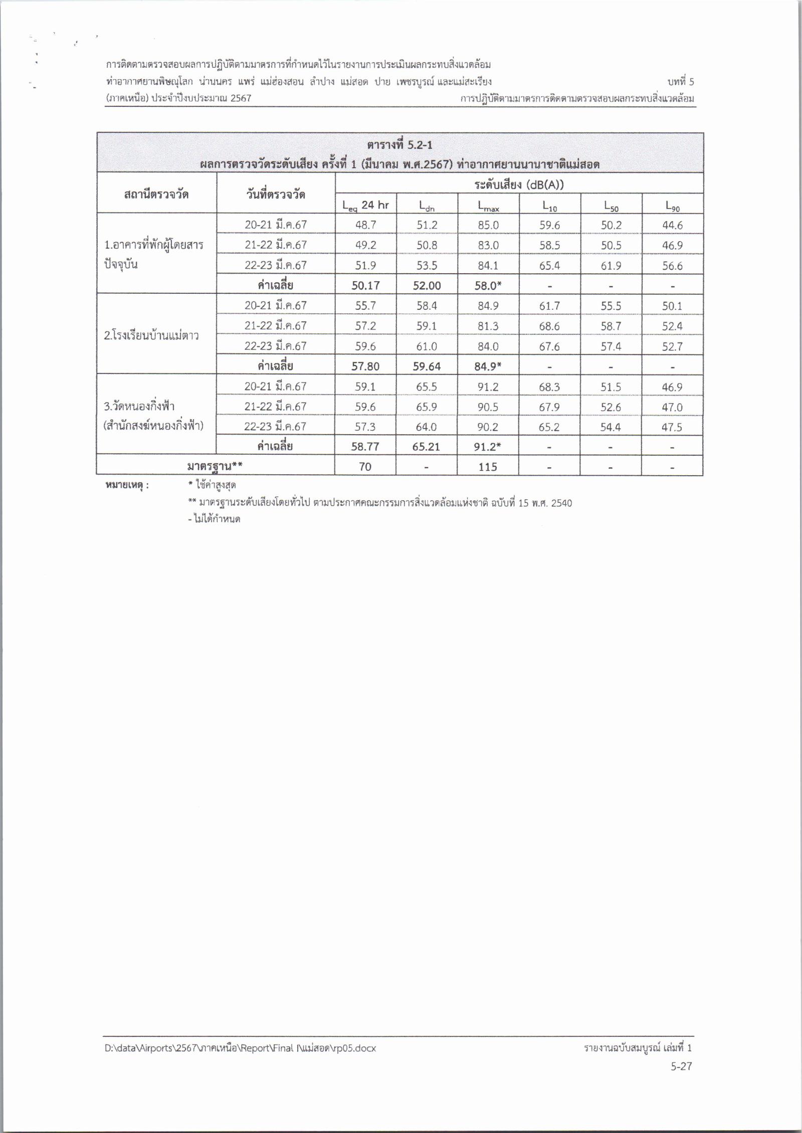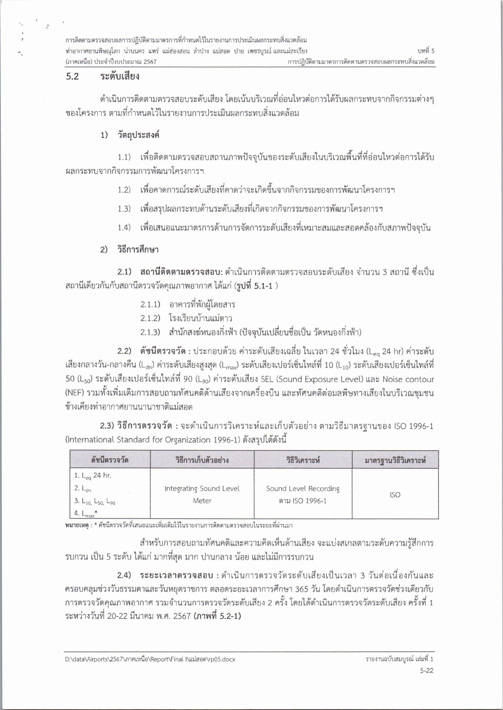 ประชาสัมพันธ์ ข้อมูลผลการดำเนินการติดตามมาตรการตรวจสอบผลกระทบสิ่งแวดล้อมการตรวจวิเคราะห์ การตรวจวัดระดับเสียง ท่าอากาศยานแม่สอด