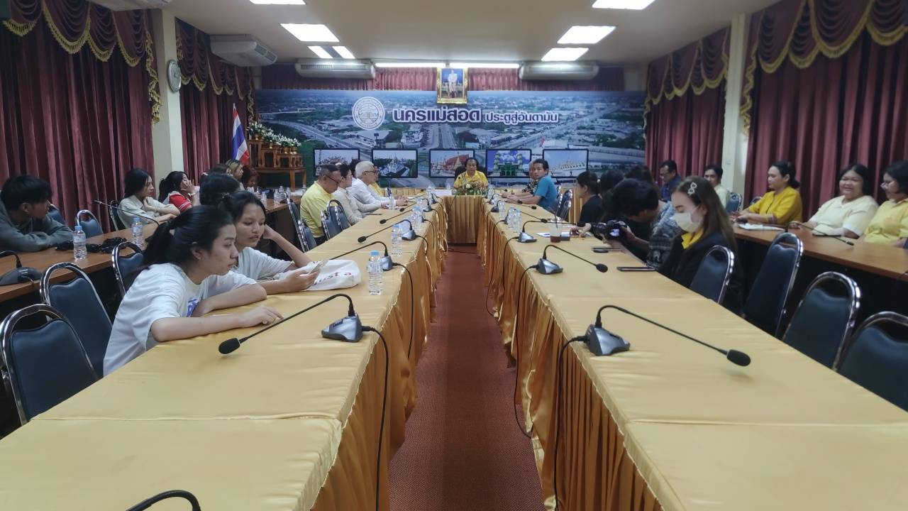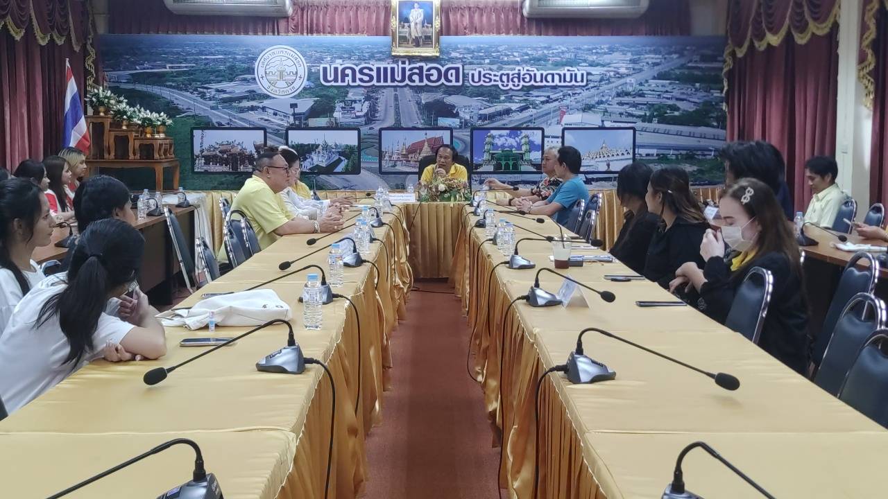 ว่าที่ร้อยตรี ประเสริฐ ปวงละคร นายกเทศมนตรีนครแม่สอด พร้อมด้วย คณะผู้บริหาร ผู้อำนวยการกอง หัวหน้าส่วนราชการ และเจ้าหน้าที่ที่เกี่ยวข้อง ร่วมให้การต้อนรับ อ.ดร.มนศักดิ์ มหิงษ์ พร้อมด้วย อ.ดร.สุพิเชษฐ์ ตองอ่อน และคณะจากวิทยาลัยโพธิวิชชาลัย มหาวิทยาลัยศรีนครินทรวิโรฒ