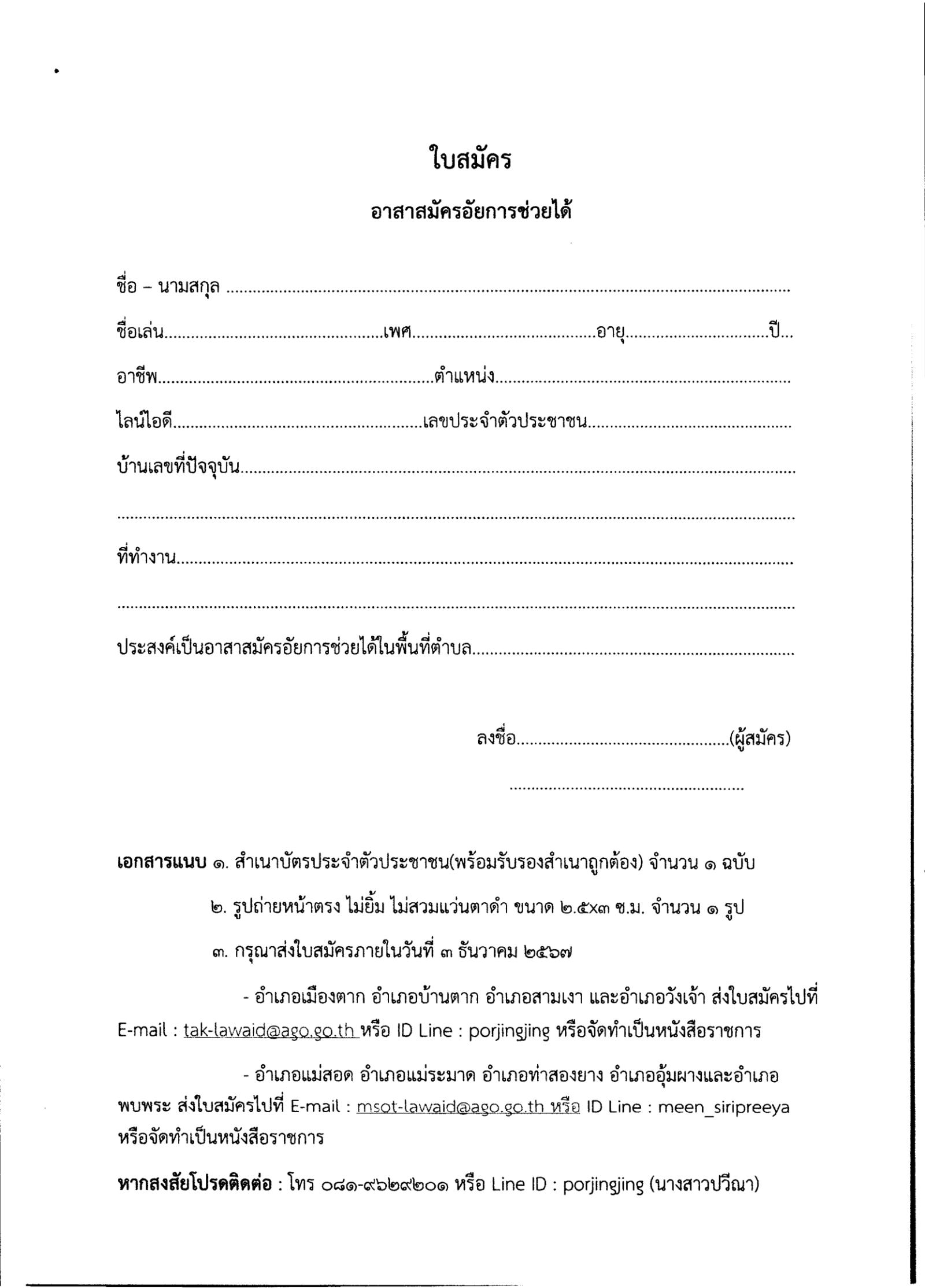 ประกาศสำนักงานอัยการคุ้มครองสิทธิและช่วยเหลือทางกฎหมายและการบังคับคดีจังหวัดตาก เรื่อง การรับสมัครอาสาสมัครอัยการช่วยได้