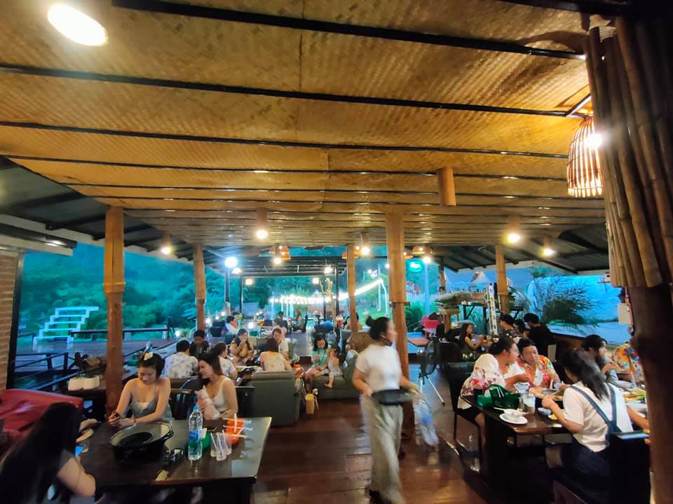 บริเวณร้านจะอยู่ติดเขา...บอกได้เลยว่าหน้าหนาวบรรยากาศดีสุด ๆ อย่างแน่นอน ส่วนโต๊ะทานอาหารก็มีให้เลือกหลายแบบ แบบแรกเป็นโต๊ะไม้และเก้าอี้โซฟานุ่ม ๆ นั่งสบาย ๆ อยู่ได้เป็นวัน ๆ แบบไม่รู้ตัวเลยล่ะ แบบที่ 2 จะเป็นซุ้มไม้นั่งกับกลุ่มเพื่อนก็ได้ชิล ๆ แบบที่ 3 เป็นโต๊ะนั่งกลางแจ้งถ้ากินหมูกระทะกับเพื่อน ๆ ต้องสนุกสุด ๆ อย่างแน่นอน (แนะนำนั่งตอนเย็นจะดีมาก) เอาเป็นว่าชอบนั่งแบบไหนก็เลือกได้ตามใจชอบเลยจ้า