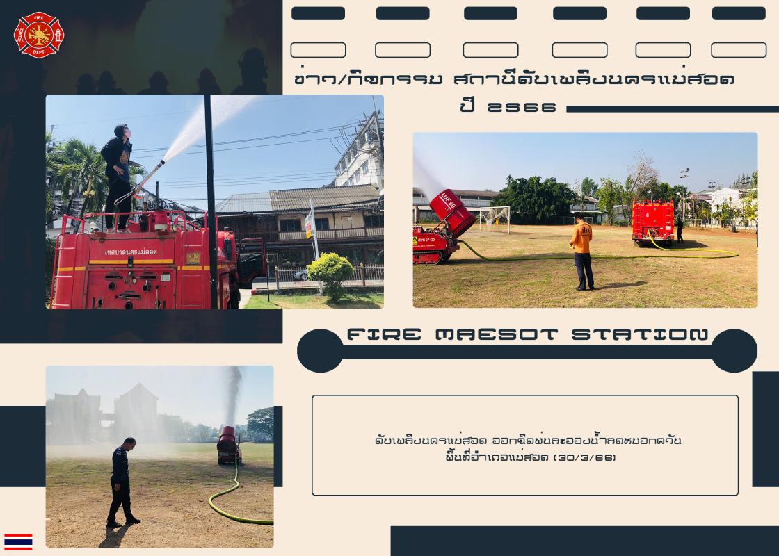 ดับเพลิงนครแม่สอด ออกฉีดพ่นละอองน้ำลดหมอกควัน พื้นที่อำเภอแม่สอด (30/3/66)