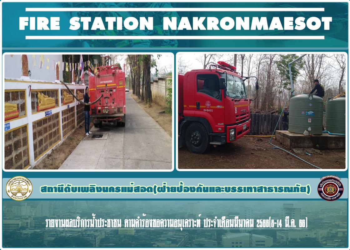 รายงานผลบริการน้ำประชาชน ตามคำร้องขอความอนุเคราะห์ ประจำเดือนมีนาคม 2566(8-14 มี.ค. 66)