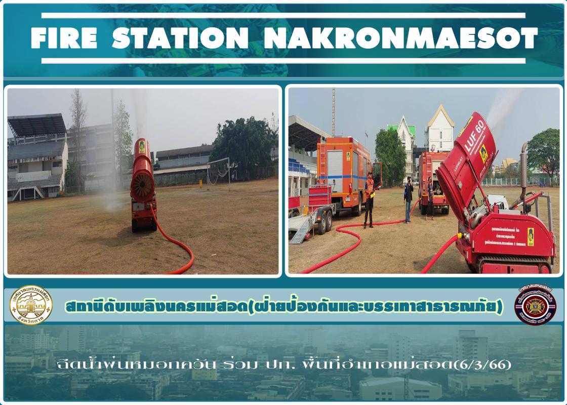 ฉีดน้ำพ่นหมอกควัน ร่วม ปภ. พื้นที่อำเภอแม่สอด(6/3/66)