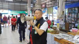 หลังจากนั้นทีมเฉพาะกิจเทศบาล ซึ่งนำโดย ดร.เทอดเกียรติ ชินสรนันท์ นายกเทศมนตรีนครแม่สอด พร้อมเลขานุการฯ รองปลัดเทศบาล หัวส่วนราชการ ทีมงานเฉพาะกิจ ลงพื้นที่ตลาดบ้านเหนือ และตลาดประชารักษ์ (บ้านใต้) เพื่อประชาสัมพันธ์แนะนำมาตรการป้องกันโรคติดเชื้อโควิด-19 โดยมีพ่อค้า แม่ค้า และประชาชน ที่มาซื้อสินค้าให้ความร่วมมือเป็นอย่างดี