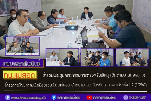 ว่าที่ร้อยตรี ประเสริฐ ปวงละคร นายกเทศมนตรีนครแม่สอด พร้อมด้วย คณะผู้บริหาร สมาชิกสภาเทศบาลและเจ้าหน้าที่ที่เกี่ยวข้อง เข้าร่วมการประชุมคณะกรรมการตรวจรับพัสดุ (ติดตามงานก่อสร้าง) โครงการพัฒนาตามผังเมืองรวมเมืองแม่สอด อำเภอแม่สอด จังหวัดตาก ระยะ 2 ครั้งที่ 2 (1/2567)